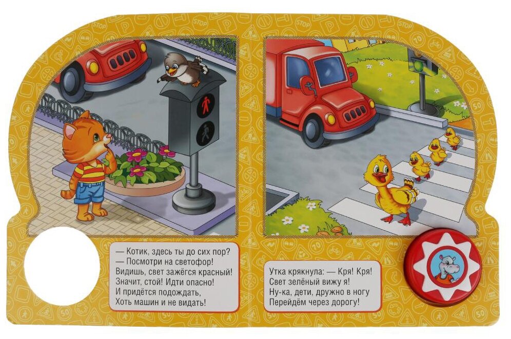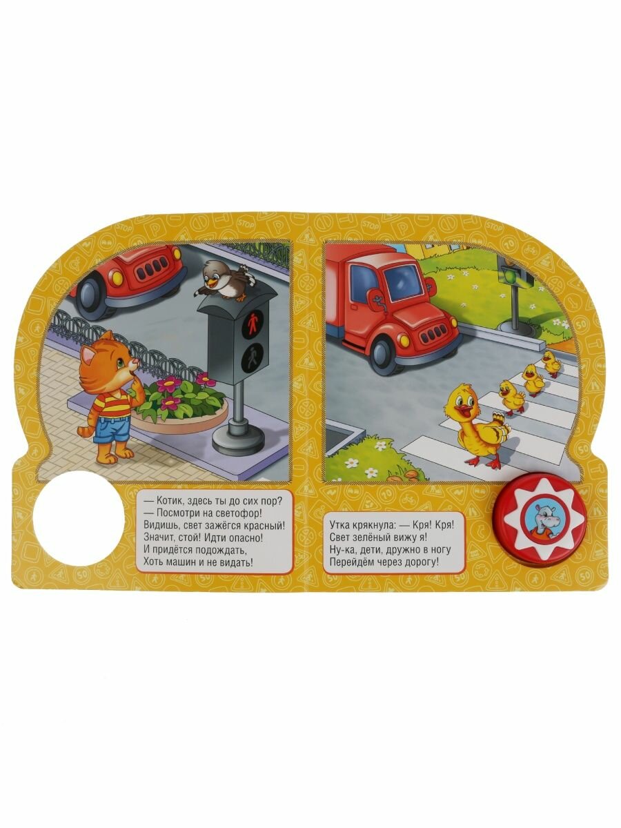 Красочная книжка с познавательными песенками познакомит малыша с правилами поведения на дороге. Отлично подойдет для чтения детям. Модуль работает на включение и выключение музыки.