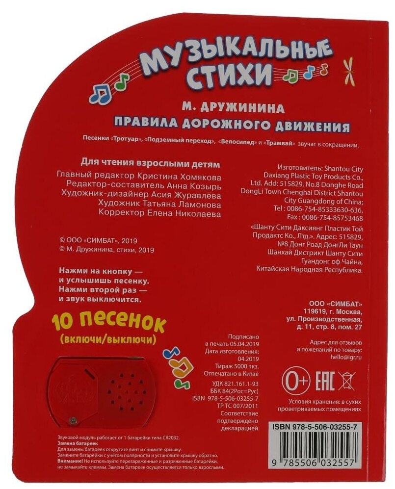 Музыкальная книжка "Правила дорожного движения. Музыкальные стихи" для маленьких любознаек.