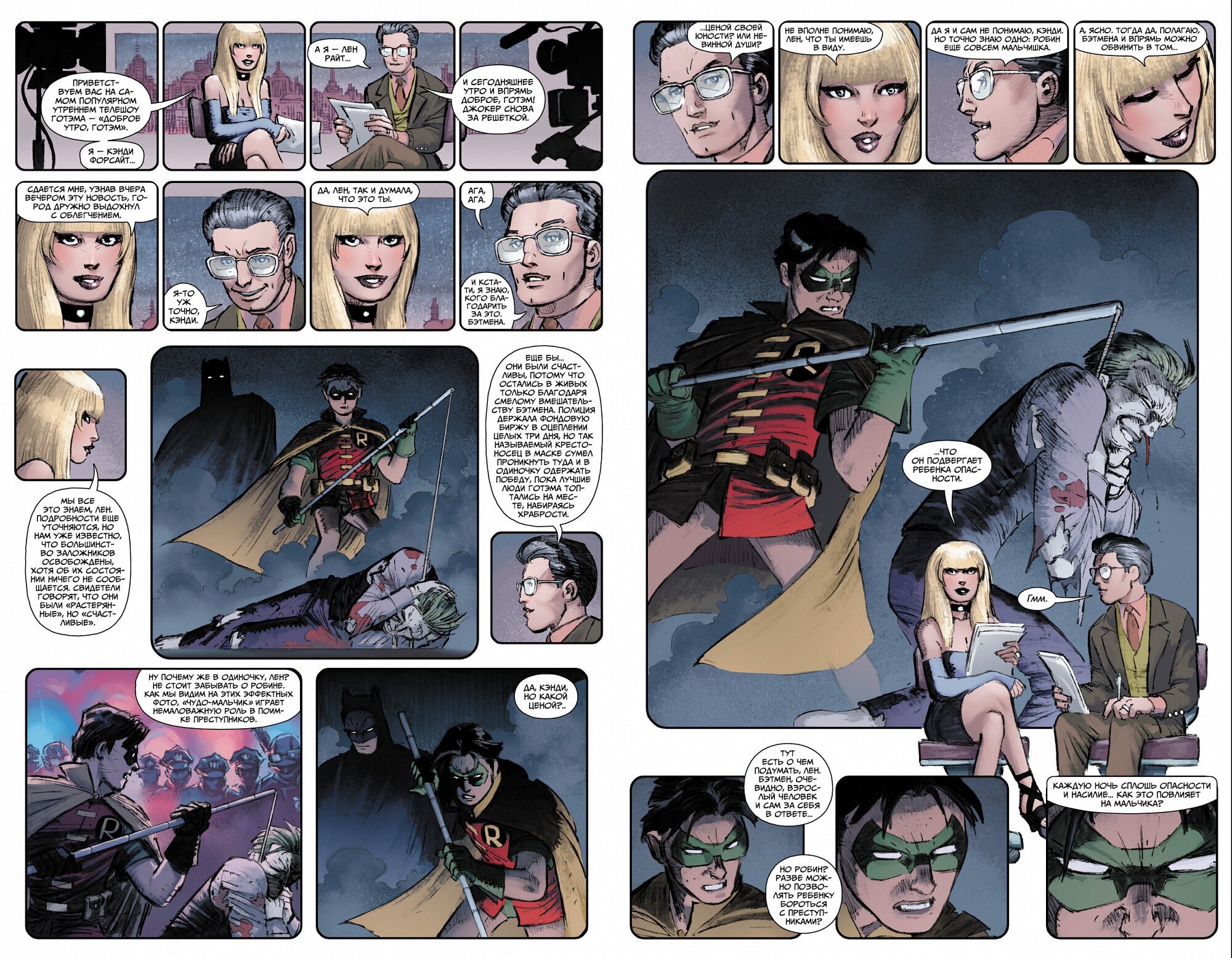 Заканчивается история печально известной всем поклонникам комиксов кульминацией, которая послужила для Темного Рыцаря причиной для ухода на пенсию, пусть и временную. Но как же было бы круто, если бы авторы подробно показали последствия этого события, а именно процесс эмоционального падения Брюса, его изменение отношений с Селиной и момент с кататонией Джокера. Конечно в оригинале об этом говорилось, но без желанных подробностей. Также неплохо было бы уделить больше времени проблеме отцов и детей и показать общественную реакцию на резонансное событие. Но этого всего нет, к сожалению. Поэтому обязательным для ознакомления я этот комикс не назову, ему попросту не хватает объема для раскрытия важных тем. Но все же это очень крепкая, камерная история, служащая предпосылкой для уже хорошо известных нам будущих событий. К тому же написана она просто прекрасно. Если не ожидать от него слишком много, то приквел наверняка вам понравится.