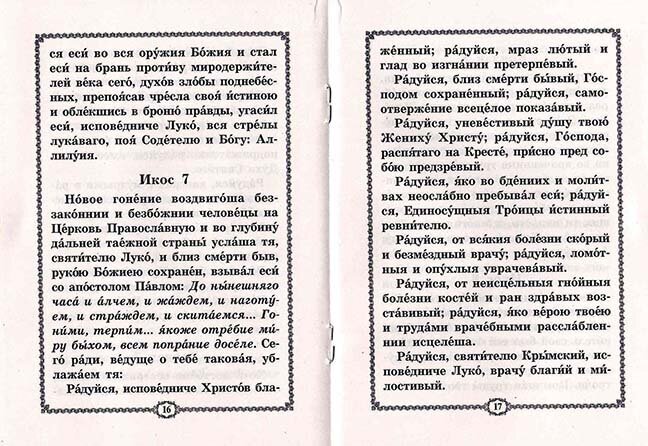 Данное издание из серии «Дивен Бог во святых своих» содержит акафист святителю Луке (Войно-Ясенецкому; 1877-1961). На обложке представлено краткое жизнеописание святого.Рекомендовано к публикации Издательским Советом Русской Православной Церкви