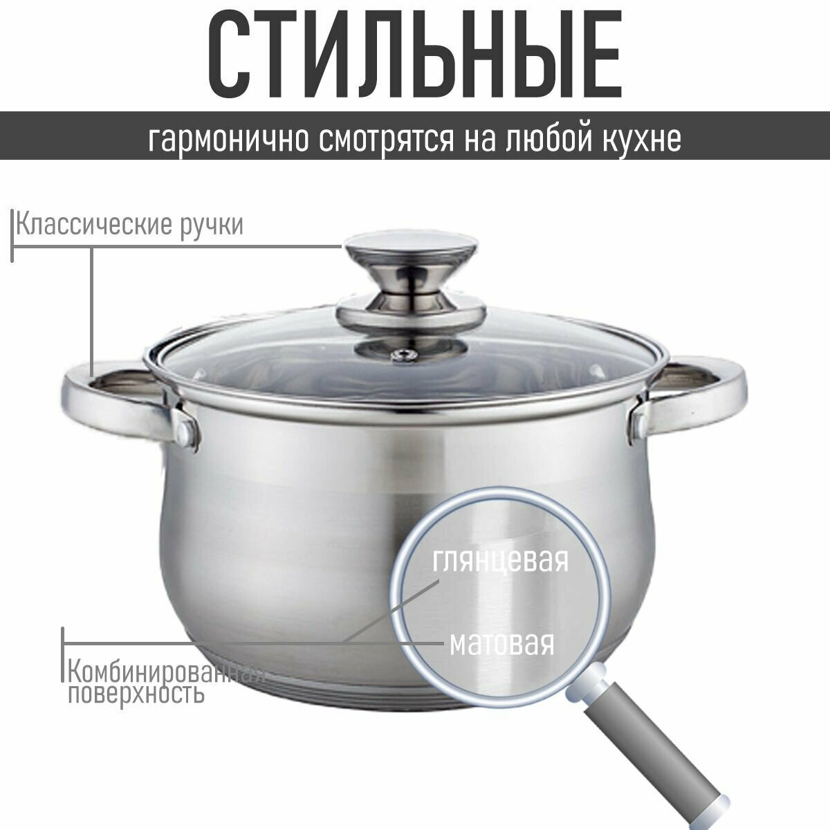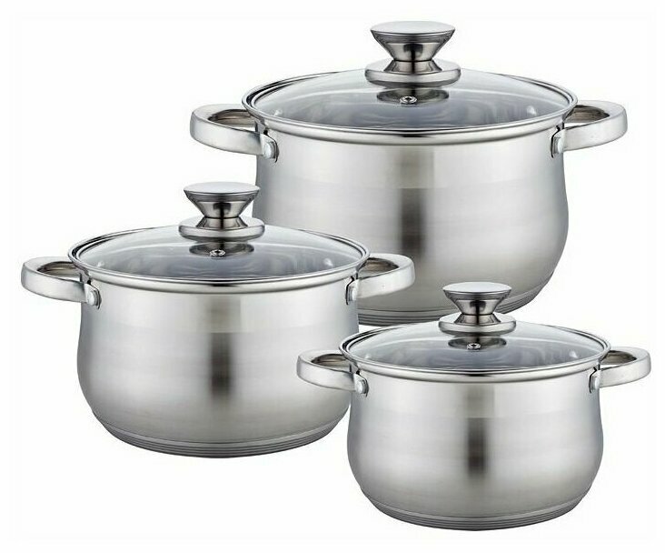 | Состав набора | кастрюля со стеклянной крышкой 2,9 л - 18x11,5 см; кастрюля со стеклянной крышкой 5,1 л -22x13,5 см; кастрюля со стеклянной крышкой 6,6 л - 24x14,5 см |