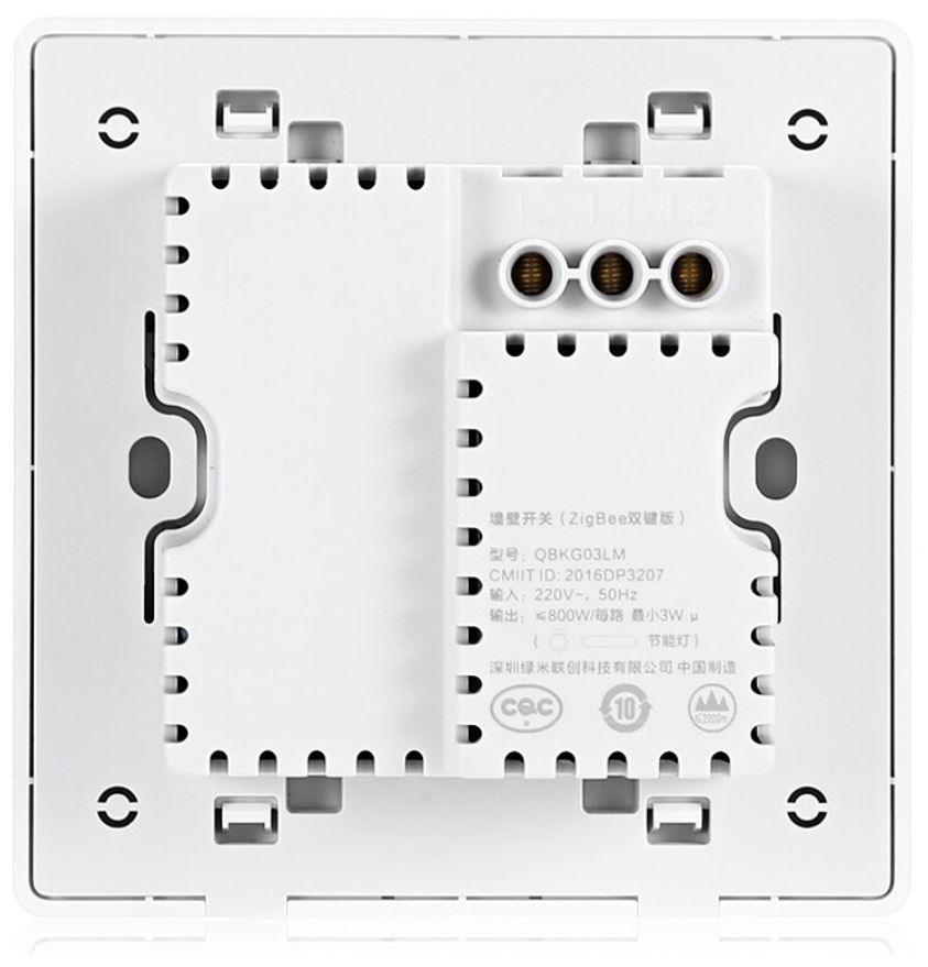- Двухкнопочный встраиваемый проводной выключатель Aqara для системы Xiaomi Mi Home