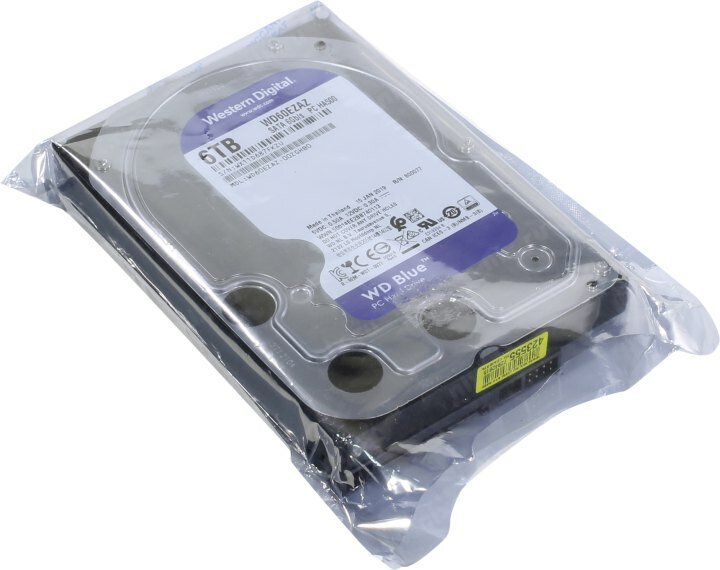 Жесткий диск WD Blue , объем 6144, форм-фактор 3.5", буферная память 256МБ, скорость вращения шпинделя 5400 об/мин, интерфейс SATA-III