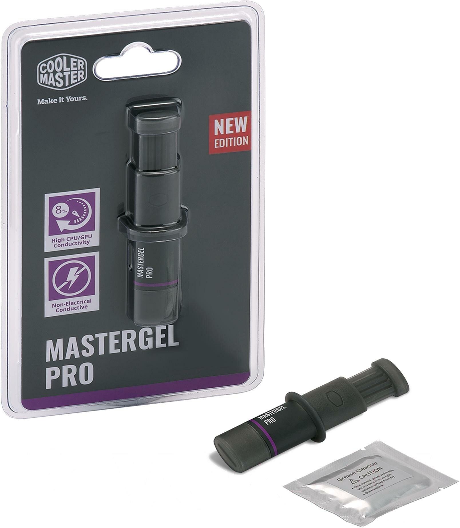 Термопаста Cooler Master Mastergel Pro — высокоэффективная теплопроводная паста для наиболее популярных процессоров. Низкое термосопротивление и оптимальная вязкость позволяют уверенно передавать тепло от корпуса процессора к радиатору. В комплекте с пастой поставляется специальное очищающее средство, которое позволяет легко очистить поверхность от пасты, которая использовалась ранее. Удельный вес (при 25 °С) 2.6 г/см?, теплопроводность > 8 Вт/(м·К), объёмное удельное сопротивление 1.0E+10 Ом·см, тепловое полное сопротивление < 0.185 °С·in?/W, соответствует требованиям RoHS, объём 1.5 мл, вес пасты 1.5 г, в комплект входят аппликатор и очиститель.