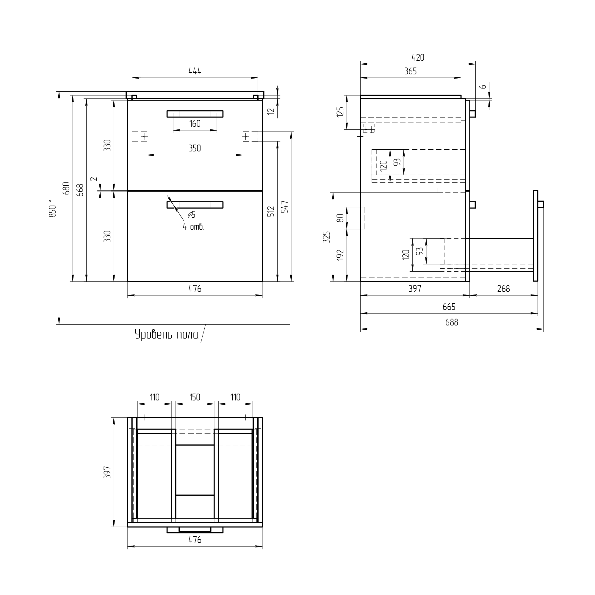 | Выдвижные ящики | есть |