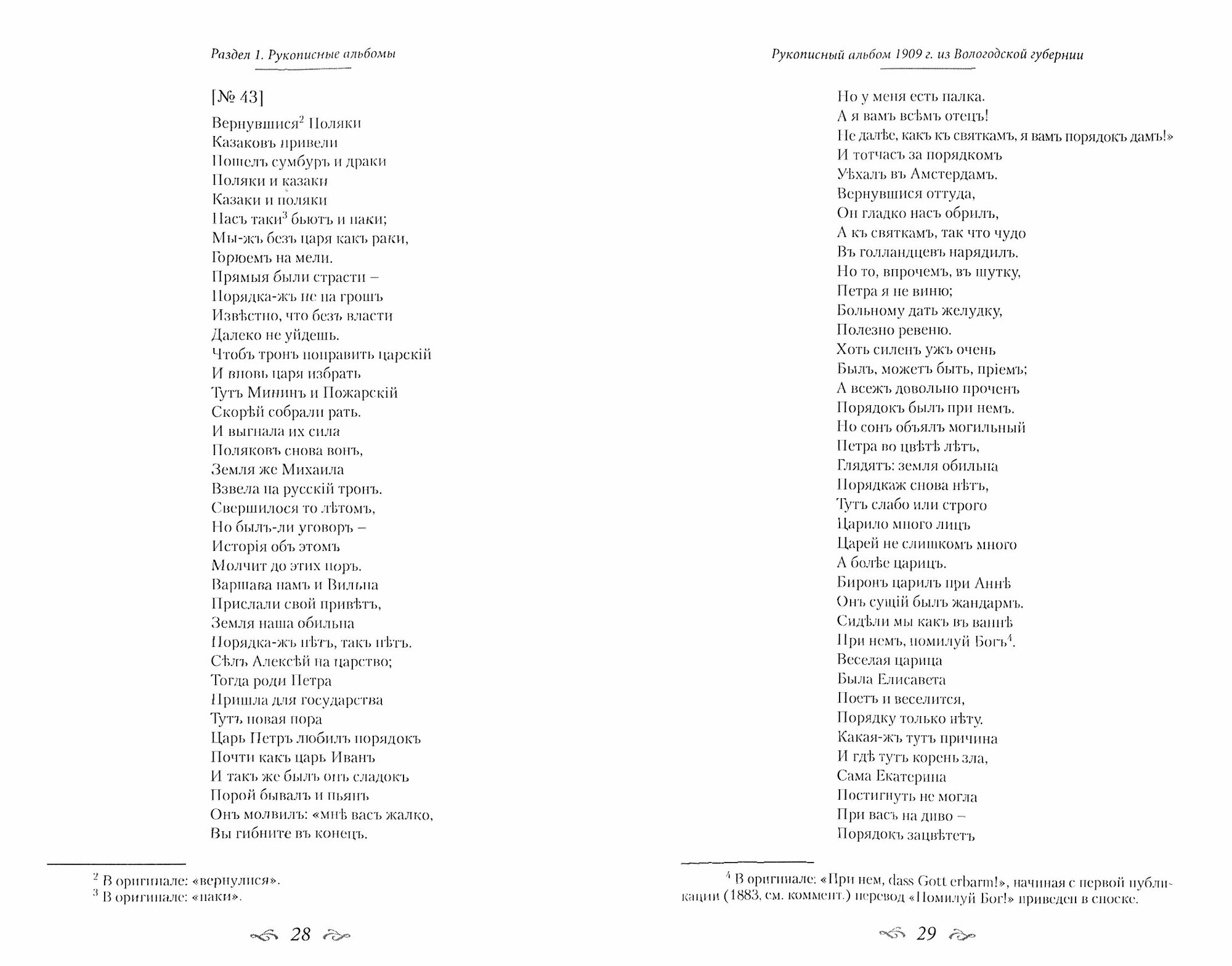 В книге представлены фольклорные материалы, которые не были записаны фольклористами. Они попали на материальные носители другими путями: в процессе бытования или в результате собирательской работы любителей. Первый раздел составили рукописные школьные альбомы-песенники 1909 и 1935-1937 гг., второй - любительские коллекции частушек 1920-х гг. Публикации сопровождены комментариями и вступительными статьями, раскрывающими релевантные исторические, биографические, фольклористические и собственно фольклорные контексты каждого из публикуемых документов. Книга не только предоставляет исследователям массив не публиковавшихся ранее материалов, но и создает новый повод для продолжения теоретической дискуссии о природе фольклора и предметном поле фольклористики.