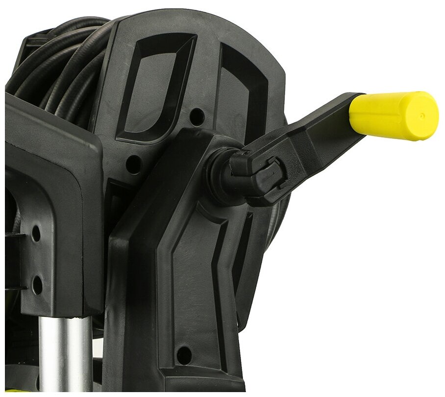 - Барабан для шланга предохраняет его от перегибов и продлевает его срок службы.