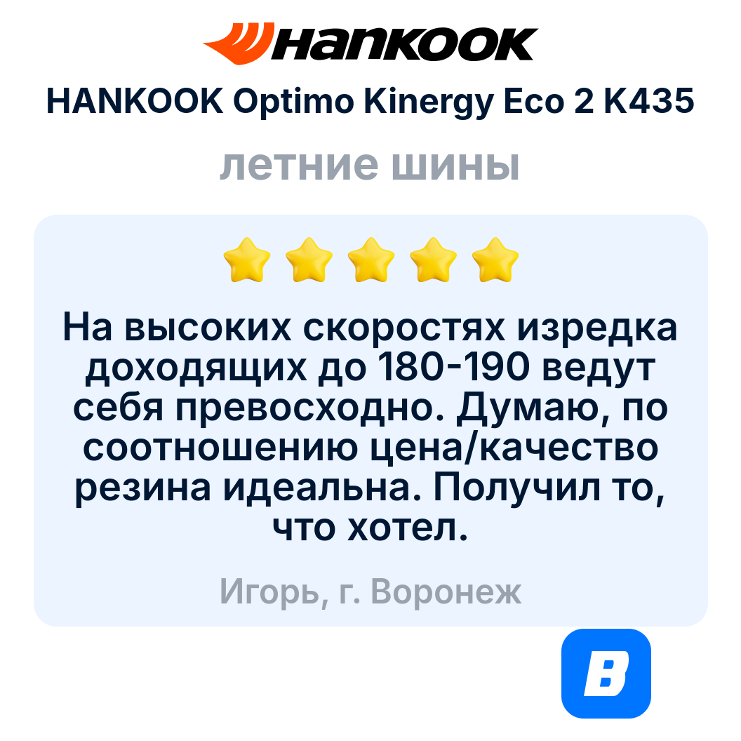 | Серия | Kinergy Eco 2 K435 (Hankook) |
