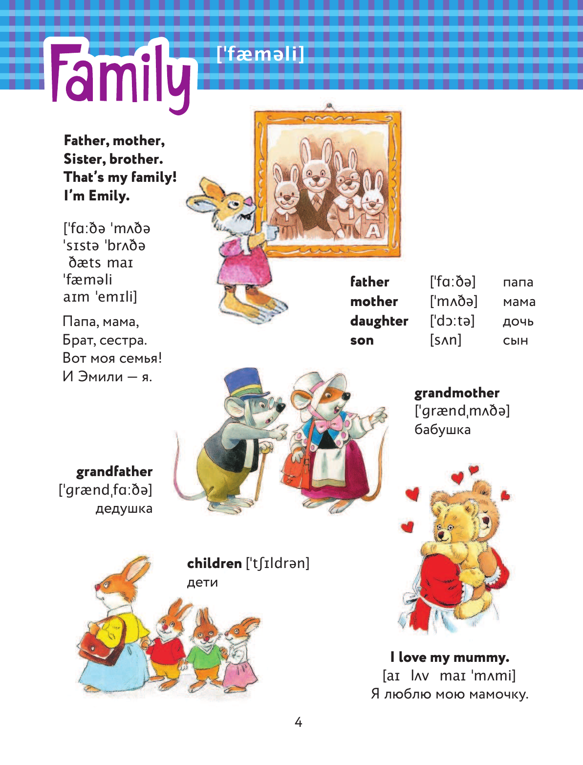 Начали с дочкой (5л) учить английский. Купила данную книгу как дополнение к основным занятиям, для рассматривания. Такая книга-гляделка. Очень милые и просто замечательные иллюстрации. В книге представлены основные темы для общения. На каждом развороте подписанные иллюстрации и есть стишок на английском. Дочка в восторге от этих стишков! Оформлено все очень толково, задействованы даже форзацы: на первом алфавит, на втором цвета.