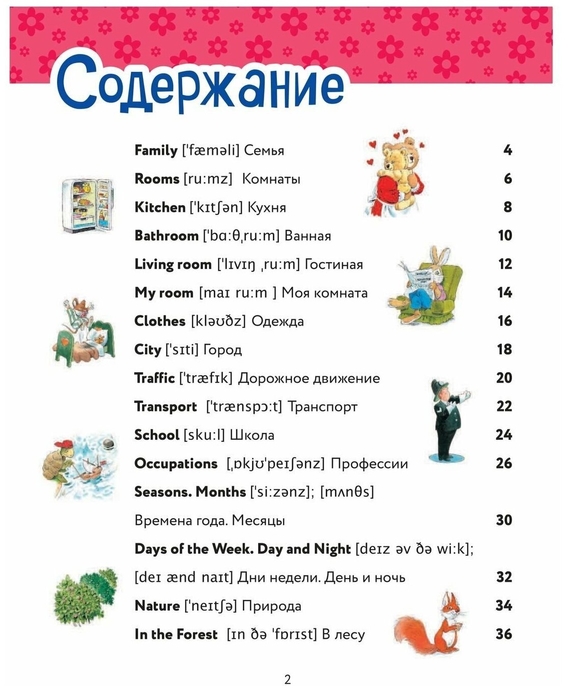 По сути это тематический словарик с иллюстрациями Тони Вульфа.Темы разнообразные, их несколько, для первого ознакомления точно хватит. В конце дан англо-русский словарик. Понравилось то, что транскрипция дана на английском. Иногда встречаются короткие стишки для повторения и заучивания (при желании) и советы как правильно себя вести (в том числе на дороге). Иллюстрации мимимишные, деткам понравятся. На форзацах расположена полезная информация- алфавит и цвета. Книга в переплёте, бумага белая, плотная.