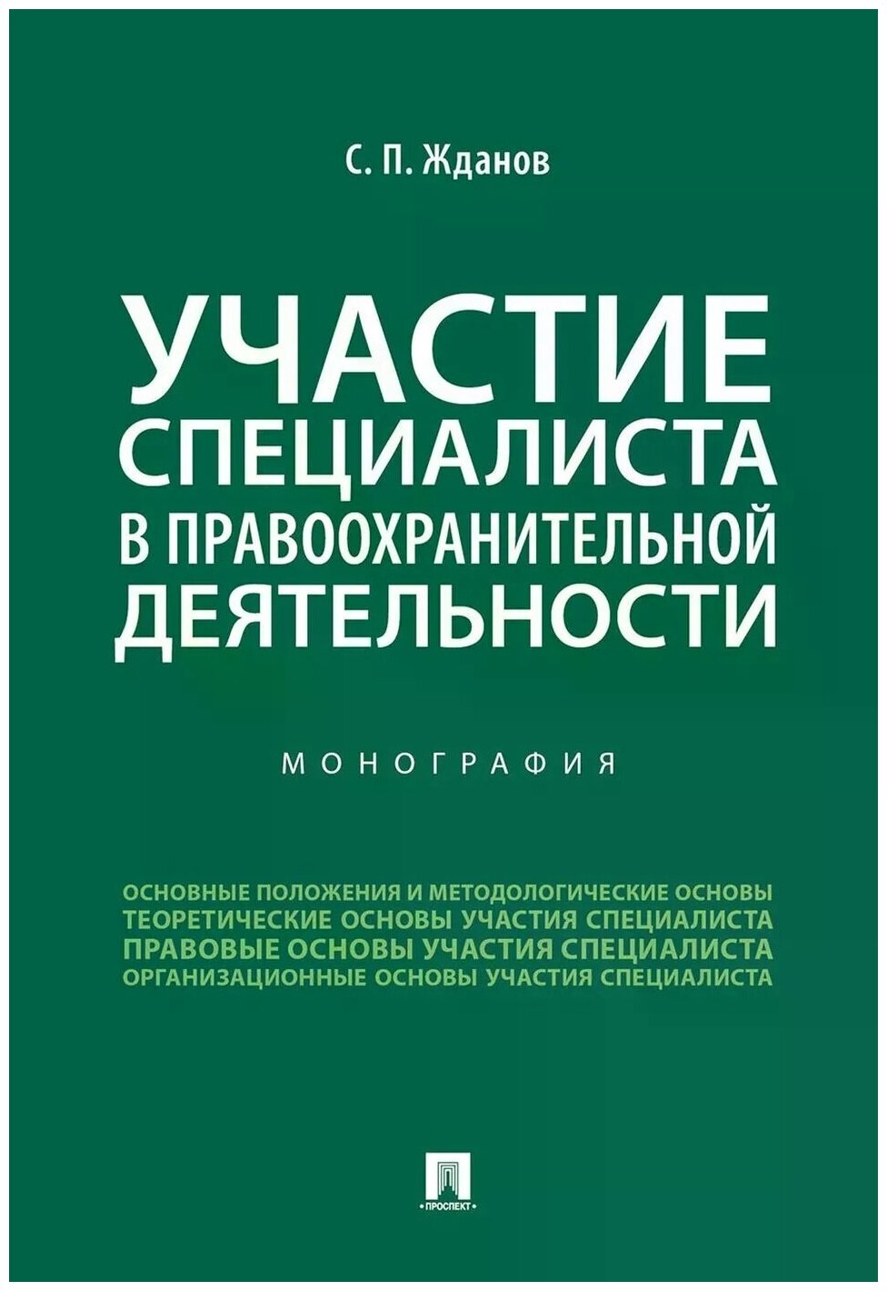 Монография посвящена участию специалиста в правоохранительной деятельности. В ней рассматриваются методологические, теоретические, правовые и организационные основы участия специалиста в производстве по делам об административных правонарушениях и уголовным делам, проведении оперативно-разыскных мероприятий. Особое внимание уделено некоторой административной, судебной, прокурорской, следственной, адвокатской, экспертной, судебно- медицинской и оперативно-разыскной практики по участию специалиста в правоохранительной деятельности представителей Центрального, Южного, Северо-Западного, Дальневосточного, Сибирского, Уральского, Приволжского и Северо-Кавказского федеральных округов. В приложении представлен инициативный авторский проект федерального закона "О деятельности специалиста в Российской Федерации".