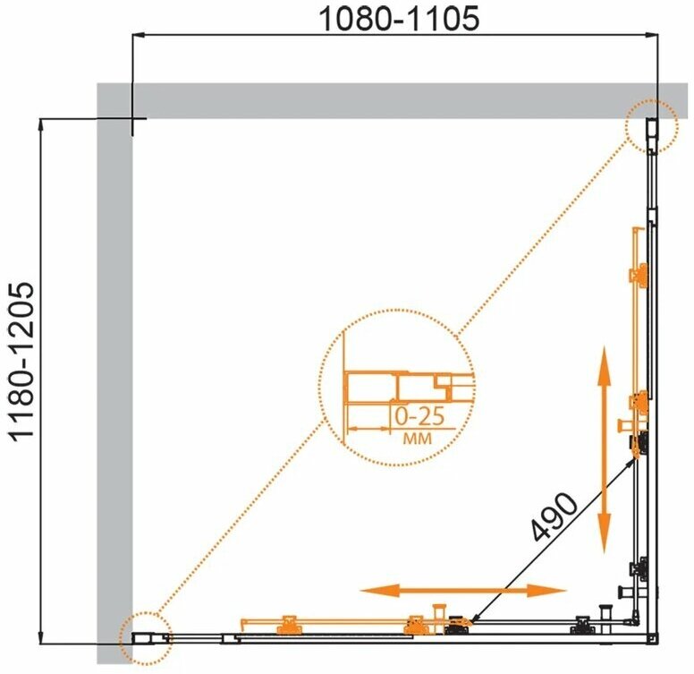 | Цвет профиля дверей/стенок | хром |