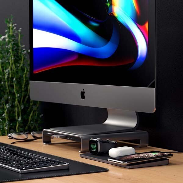 С Satechi Trio можно забыть о надоедливых проводах, которые нужно подключать к смартфону или часам во время их зарядки. Важно помнить, что на поверхность ЗУ нельзя класть металлические предметы, ведь это может привести к его поломке. Подключение зарядной станции к источнику питания происходит посредством комплектного кабеля USB-C. Satechi Trio заключен в эргономичный корпус, выполненный в ультратонком форм-факторе. Он изготовлен из прочного износостойкого ABS-пластика и имеет нескользящую силиконовую подложку для лучшей устойчивости. Hi-Tech дизайн устройства идеально впишется в интерьер любой современной комнаты.