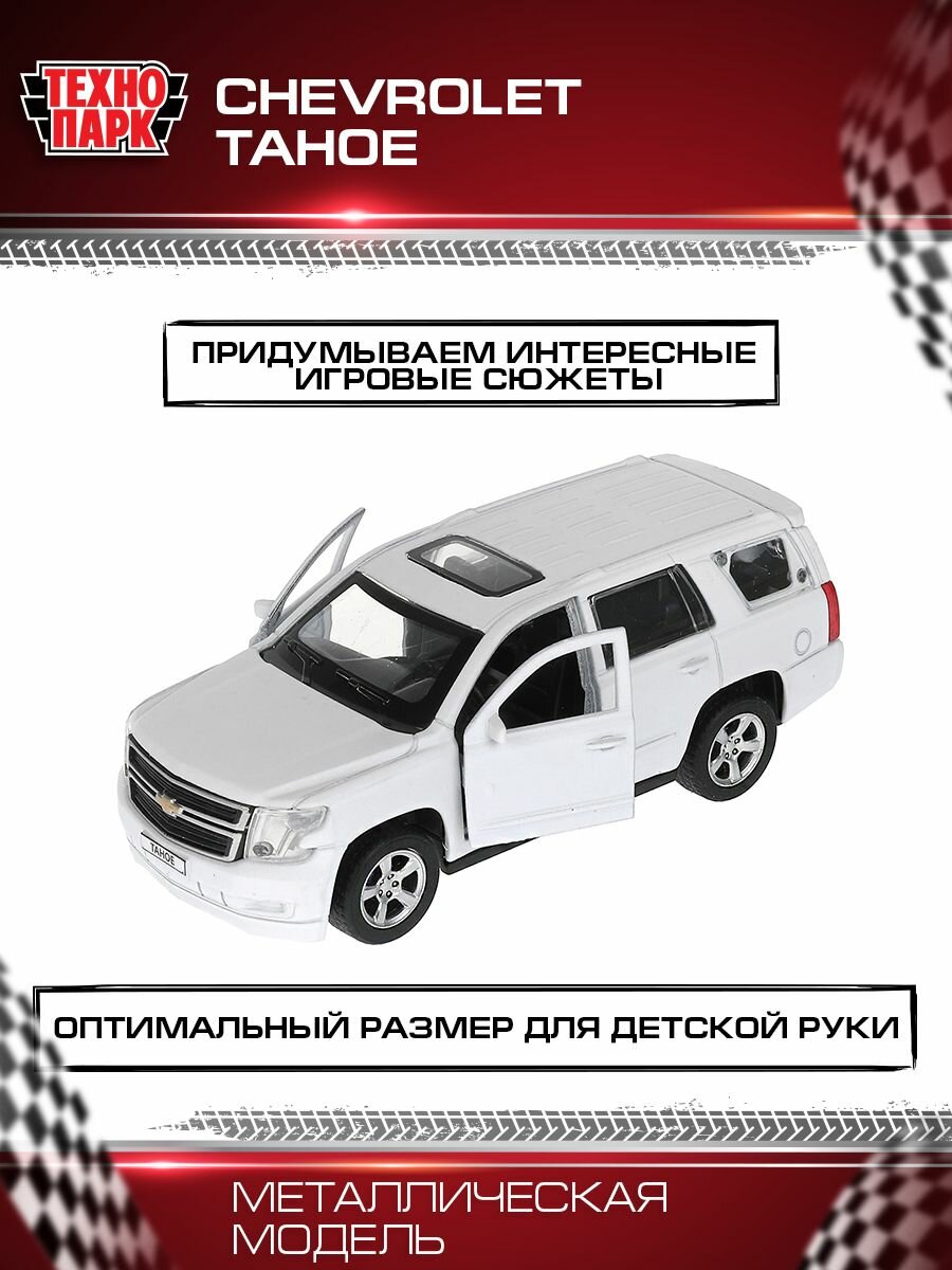 Сервис сравнения цен СкидкаГИД предлагает сравнить цены на товар «Машина металл "CHEVROLET TAHOE" длина 12 см откр дв багаж инерц КРАСНЫЙ Технопарк в кор.2*36шт»