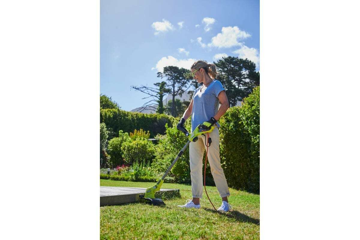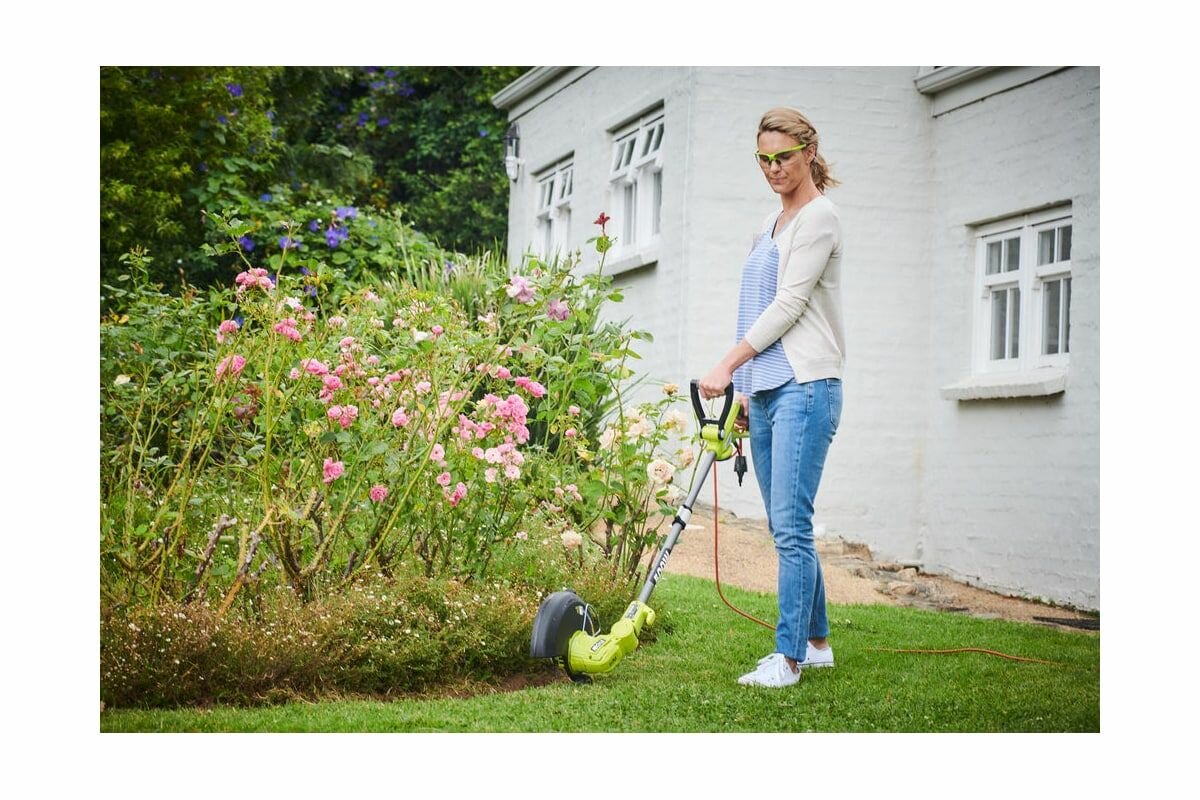 Триммер с леской Ryobi используется для скашивания травы и подравнивания кромки газона. Защитный кожух оберегает цветы и прочие предметы от повреждений. Телескопическая штанга позволяет подбирать оптимальную длину в зависимости от роста оператора. Угол наклона двигателя можно регулировать.