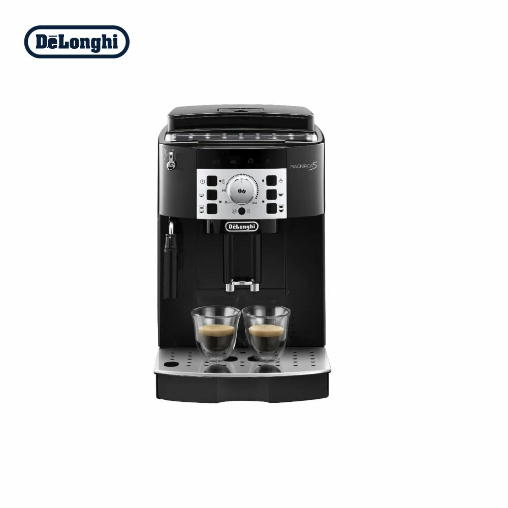 Компактная кофемашина Delonghi Magnifica S ECAM 22.110 — предельно простая в обращении современная автоматическая модель, позволяющая нажатием одной кнопки и поворотом рукоятки готовить различные кофейные напитки. Модель оборудована усовершенствованной кнопочной панелью управления, а поворотный переключатель позволит задать желаемую крепость напитка. Пользователь сможет выбрать объем порции, температуру и жесткость воды.