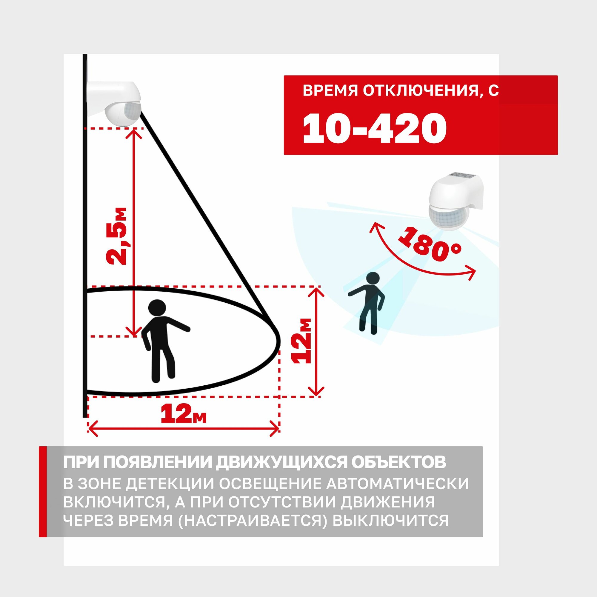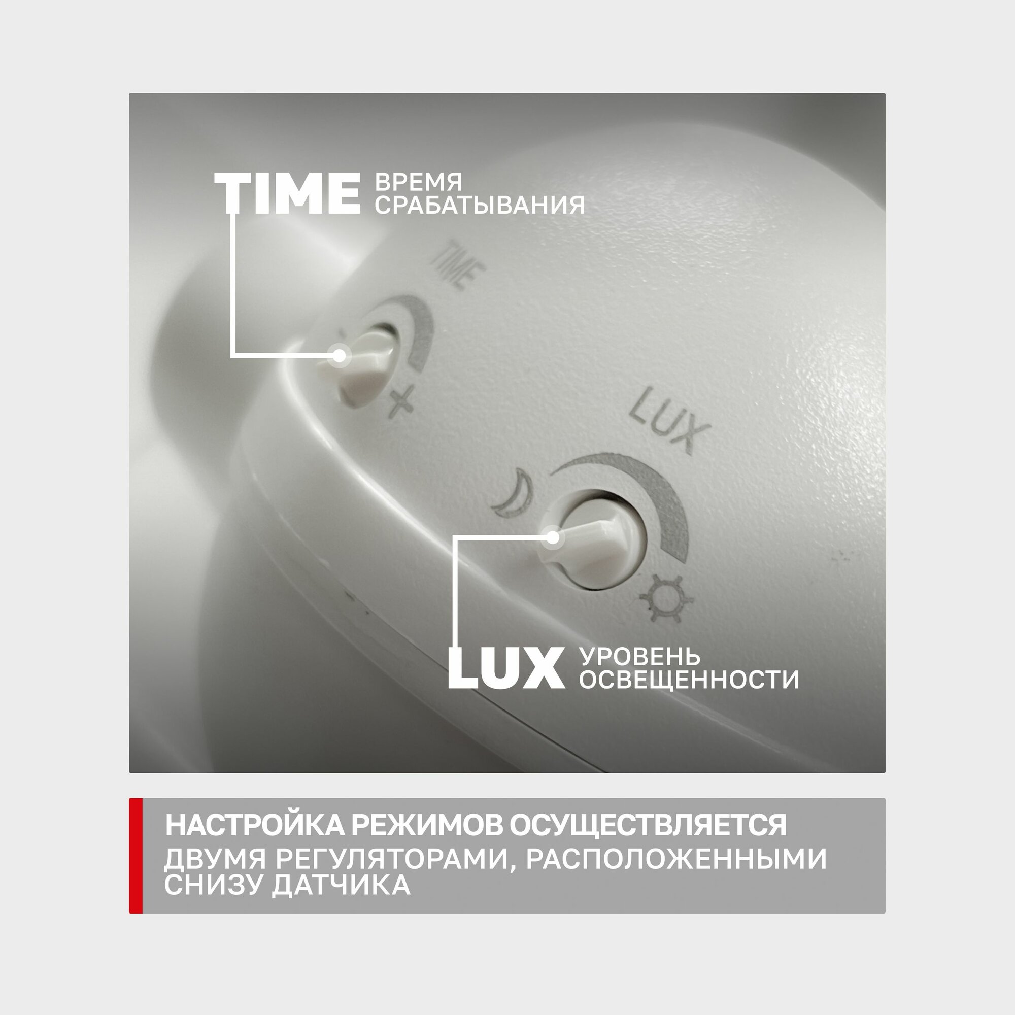 Алгоритм работы: при возникновении движения в поле зрения датчика встроенное электромеханическое реле коммутирует подключенную нагрузку. После этого нагрузка находится под напряжением в течение заданного времени (время настраивается) и выключается. Дополнительно датчики имеют функцию контроля освещенности. Если освещенность в зоне детекции выше заданного уровня (уровень настраивается), то нагрузка включаться не будет, что позволяет дополнительно экономить электроэнергию в дневное время.