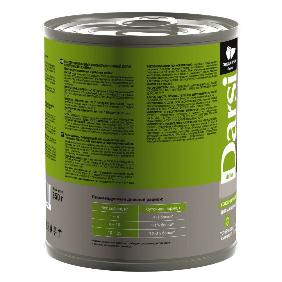 Влажный корм для собак Darsi Сердце с печенью 085 кг