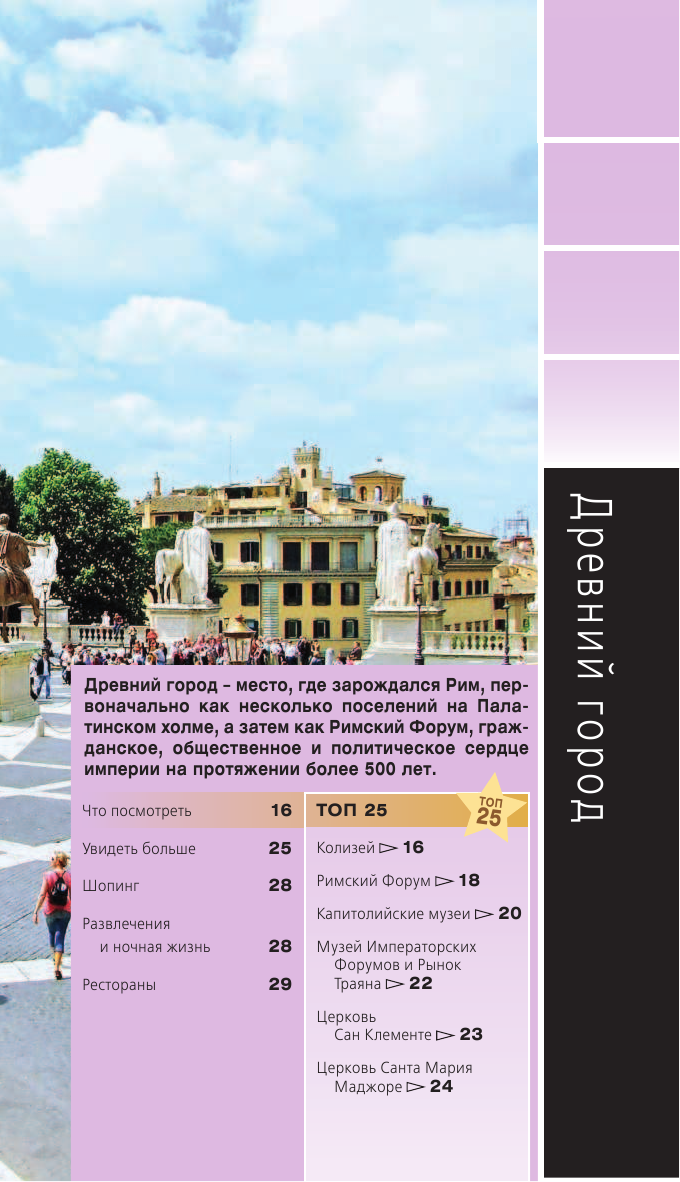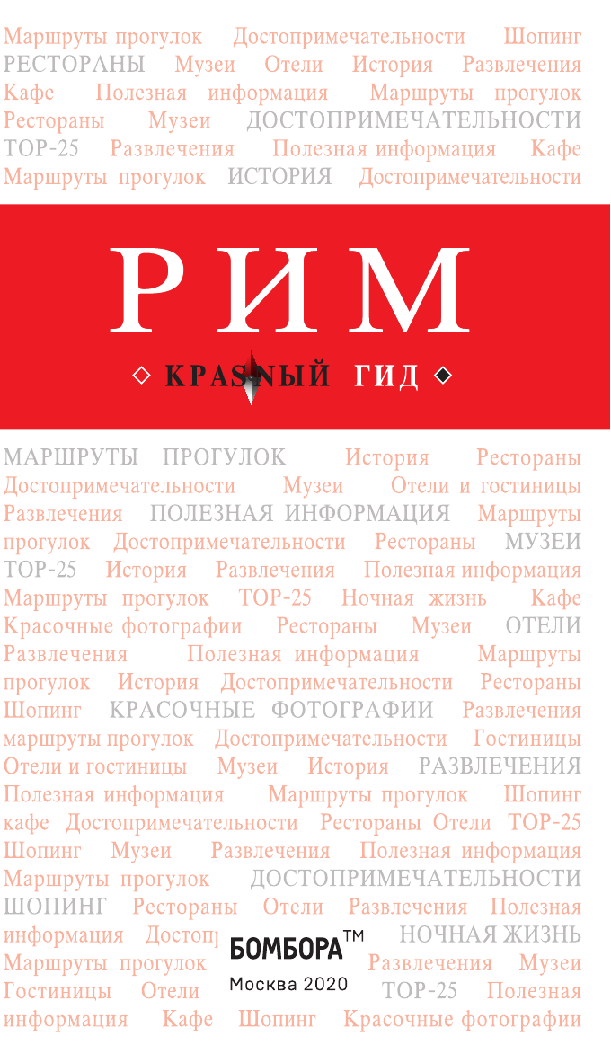 Путеводитель Красный гид - Рим компактный, как по форме, так и по содержанию. Описание частей города сделано в виде отдельных глав. В них представлен удобный маршрут на день по определённой части города с описанием местных достопримечательностей, мест где можно перекусить или пообедать/поужинать и магазинов, в которых можно сделать необходимые покупки.