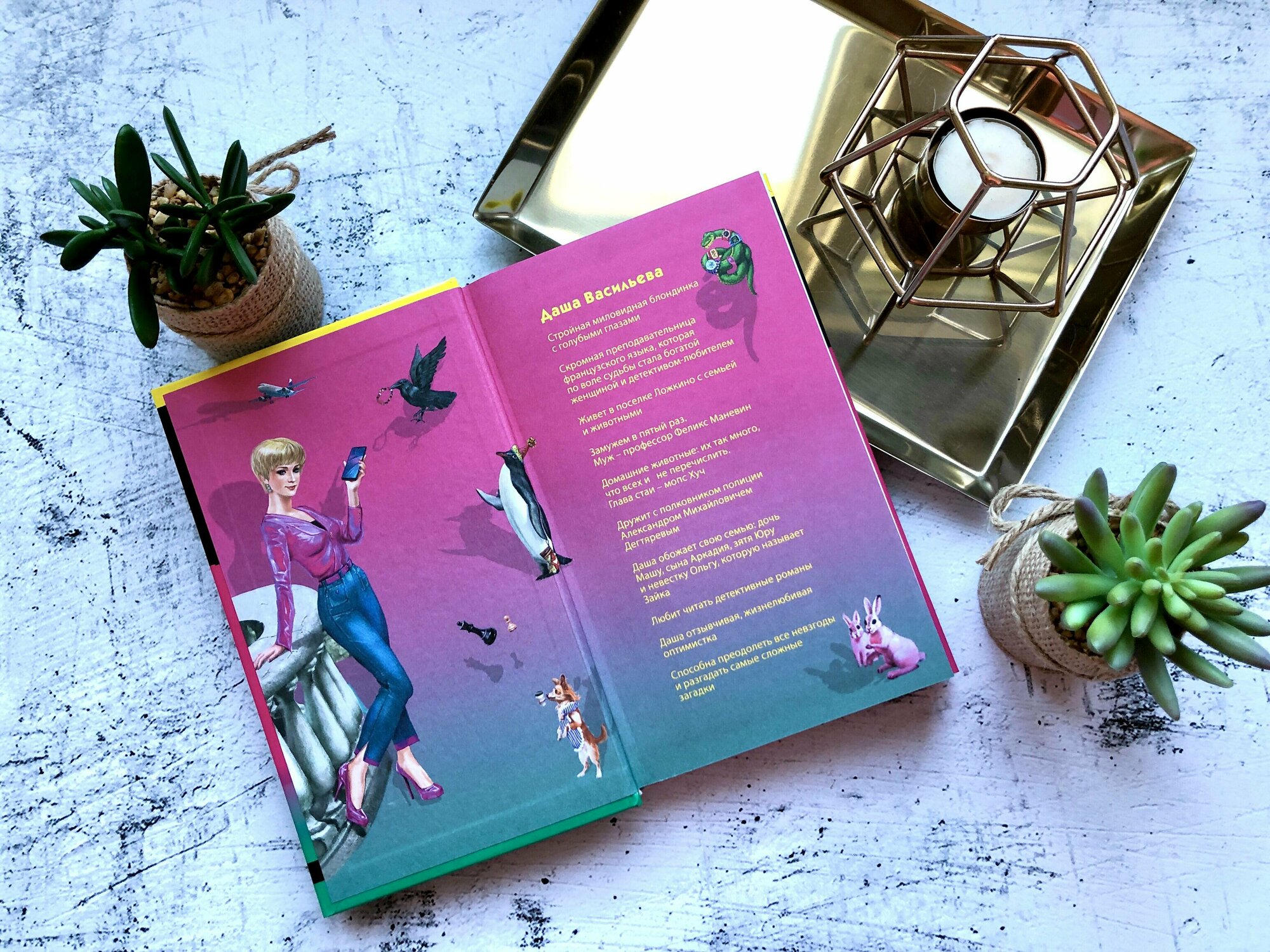 Дочитывая каждую книгу о Даше Васильевой все время боюсь, что эта последняя, но Дарья Донцова продолжает радовать новинками. Очень ждала новый роман про Дашу, и ожидания он оправдал. Читаю и радуюсь – смешно, ярко, каскад приключений, водоворот событий, семейные ценности. Все, что я так ценю в детективах Донцовой, все на месте. Хоть какая-то стабильность в этой жизни.
