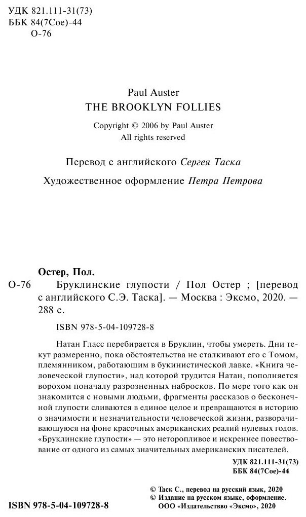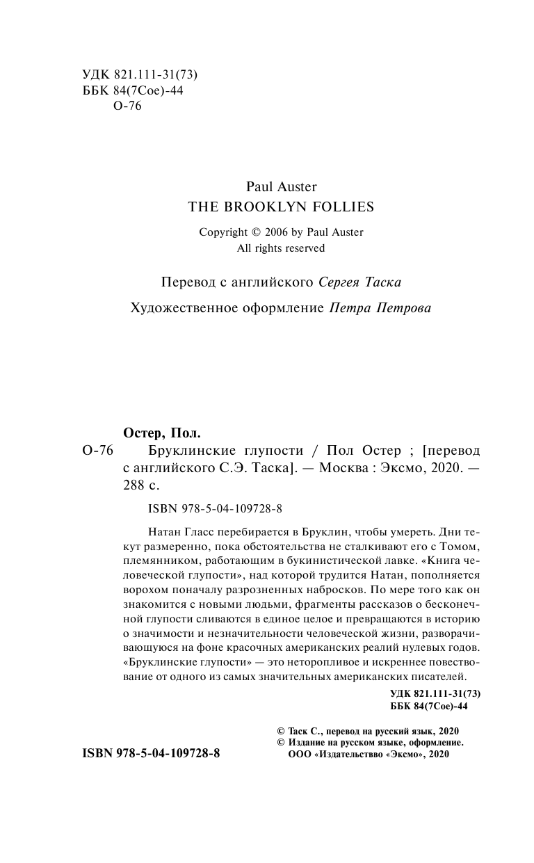 Книга: Бруклинские глупости (Пол Бенджамин Остер); Эксмо, Редакция 1, 2020