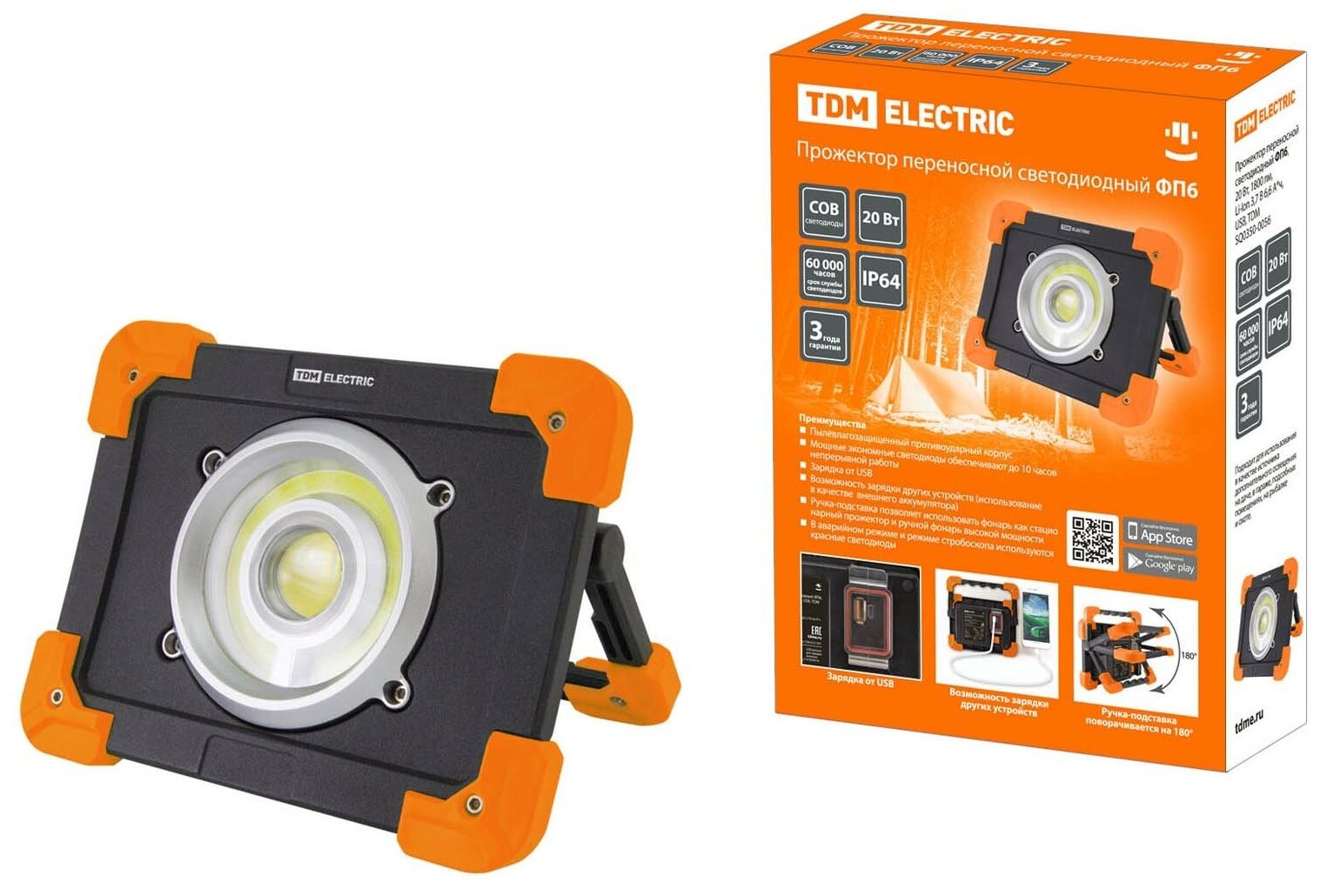 Переносной светодиодный прожектор TDM имеет ручку-трансформер для установки или переноски, которая поворачивается на 180°. Оснащен аккумулятором, что позволяет использовать прожектор в качестве дополнительного освещения.