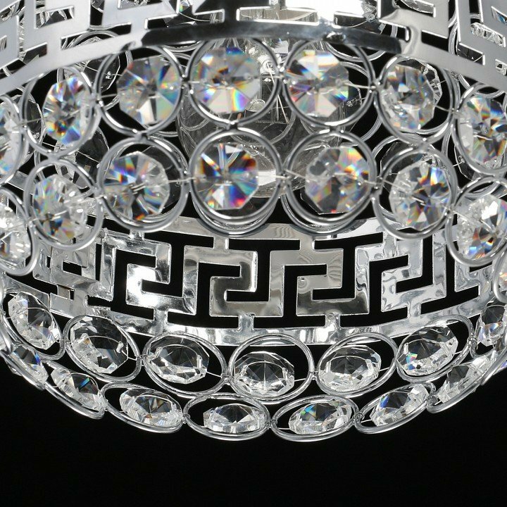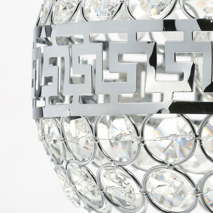 Атмосферное освещение. Плафон с хрустальными октагонами и фигурным декоративным кантом из металла создает игру теней на стенах и потолке. Универсальный цвет хрома основания всегда в тренде. Оптимальная длина подвеса 1,2 м удобна для зональной подсветки.