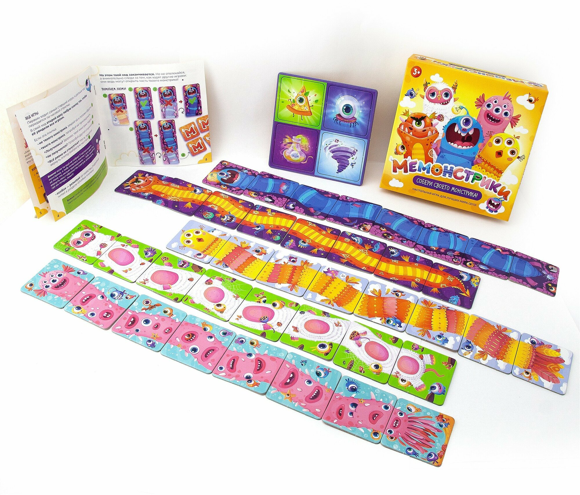 Настольная детская игра, в которой игроки выращивают своих монстриков. На выбор предлагается один из пяти персонажей. Игроки по очереди открывают плитки с частями монстрика и соединяют их. Изображения на плитках могут быть перевернуты, поэтому придется сообразить.
