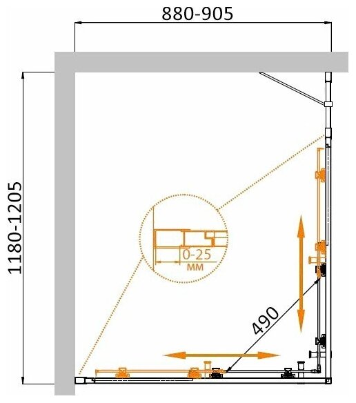 | Цвет профиля дверей/стенок | хром |