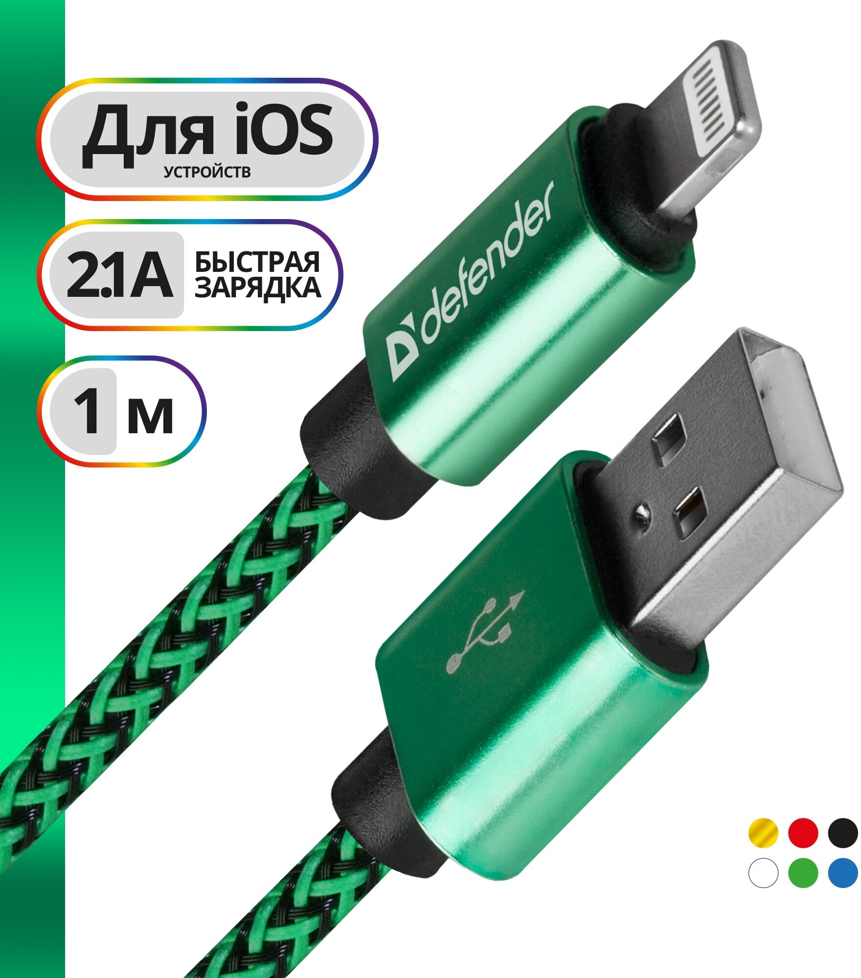 Кабель Lightning USB 2.0 1м Defender ACH01-03T PRO витой синий (размер: 2.1 A)