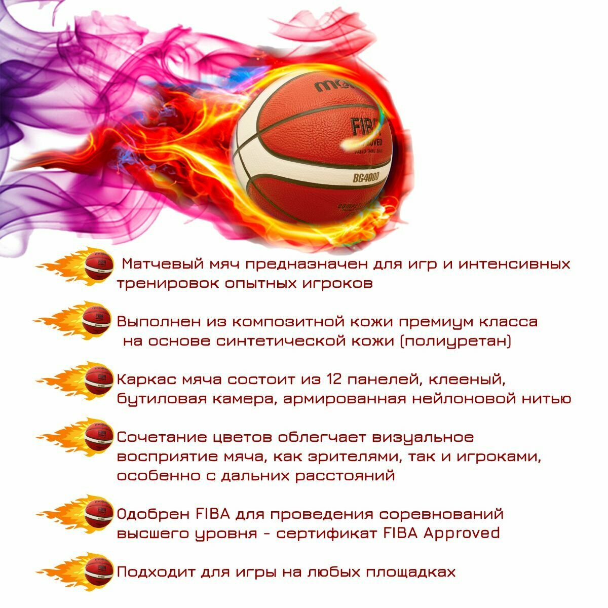 Мяч одобрен FIBA для проведения соревнований высшего уровня - сертификат FIBA Approved.
