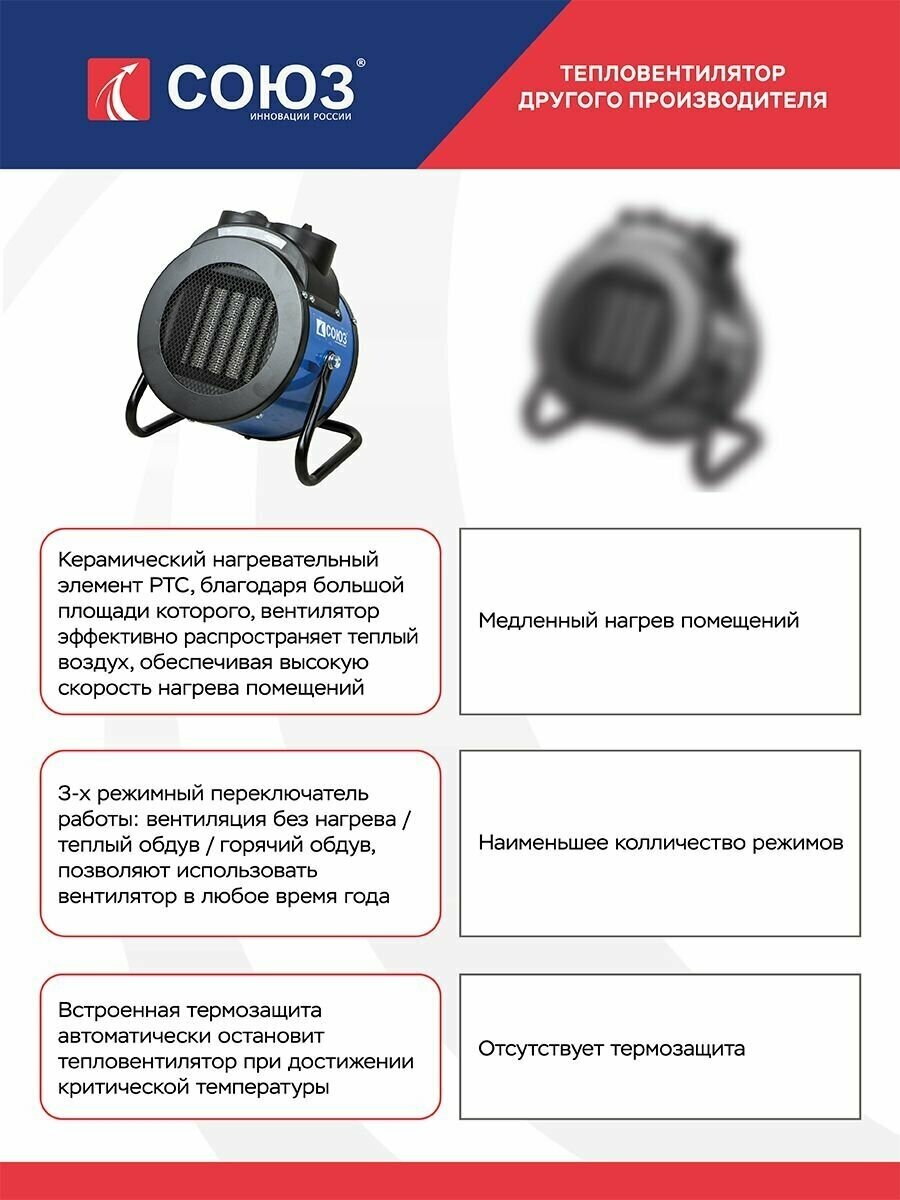 Керамический обогреватель СОЮЗ представляет собой компактный прибор, который служит для вентиляции и обогрева помещения.