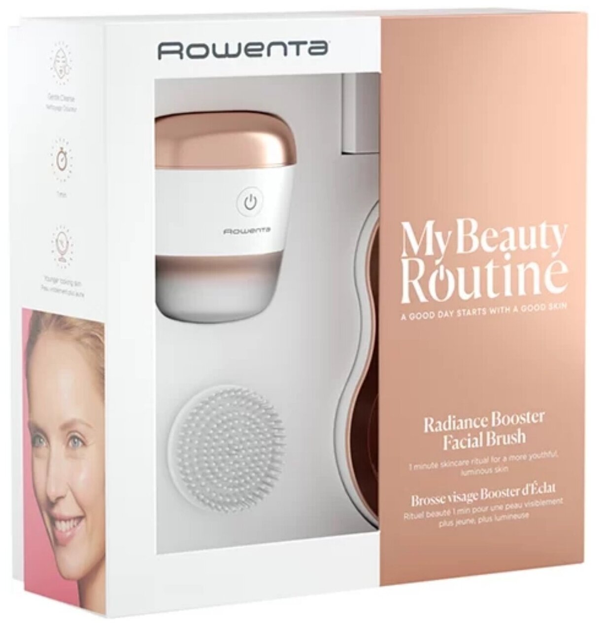 Щетка для улучшения цвета лица от Rowenta – это новое дополнение вашего ежедневного ритуала красоты. Щетка бережно массирует и успокаивает кожу лица, придавая ей свежий и сияющий вид. 95% пользователей заметили, что при ежедневном использовании щетки в течение 1 минуты кожа становится заметно моложе и красивее. Щетка для улучшения цвета лица от Rowenta помогает вернуть вашей коже сияние и молодость, при этом использовать ее нужно всего 1 минуту каждый день. Щетка эффективно смывает макияж и глубоко очищает поры, бережно массирует кожу и сохраняет ее естественную увлажненность. 95% покупателей, попробовавших щетку в деле, довольны результатами: кожа хорошо очищена, увлажнена, более гладкая и сияющая, а цвет лица стал более ровным. В комплект входят две насадки – с мягким ворсом и из медицинского силикона – для разных типов кожи, даже очень чувствительной. Щетка для улучшения цвета лица от Rowenta проста в использовании и прослужит вам достаточно долго. Специальный светодиод синего спектра обладает очищающими свойствами. Насадку-щетку следует мыть и высушивать после каждого использования, чтобы продлить срок ее службы.