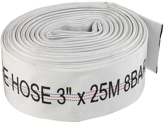 «Напорный рукав 3"х25м» – это гибкий шланг для воды, внутренний слой которого выполнен из ПВХ, а внешний – из ПЭ. Рабочее давление составляет 8 атм, а давление на разрыв – 24 атм. Шланг не оснащен фитингами.