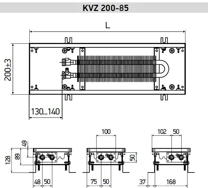 Внутрипольный конвектор Techno Usual KVZ 200-85-1400