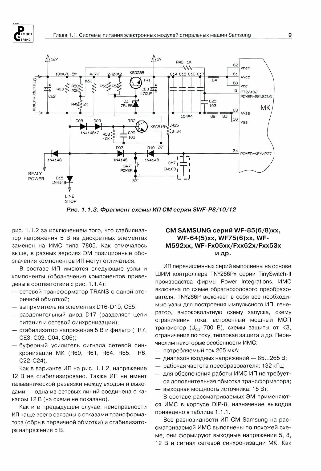 В этой книге рассматриваются источники питания и в целом организация систем питания электронных модулей стиральных машин BOSCH, CANDY, DAEWOO, LG, ELECTROLUX/ZANUSSI/AEG, SAMSUNG, HOTPOINT-ARISTON/INDESIT, Whirlpool и АТЛАНТ. Помимо описания конкретных ИП и их характерных неисправностей, в книге даны подробные материалы по принципу работы наиболее часто встречающихся в модулях стиральных машин типов ШИМ контроллеров. Также в ней отражено взаимодействие источников питания с компонентами и узлами в составе СМ.