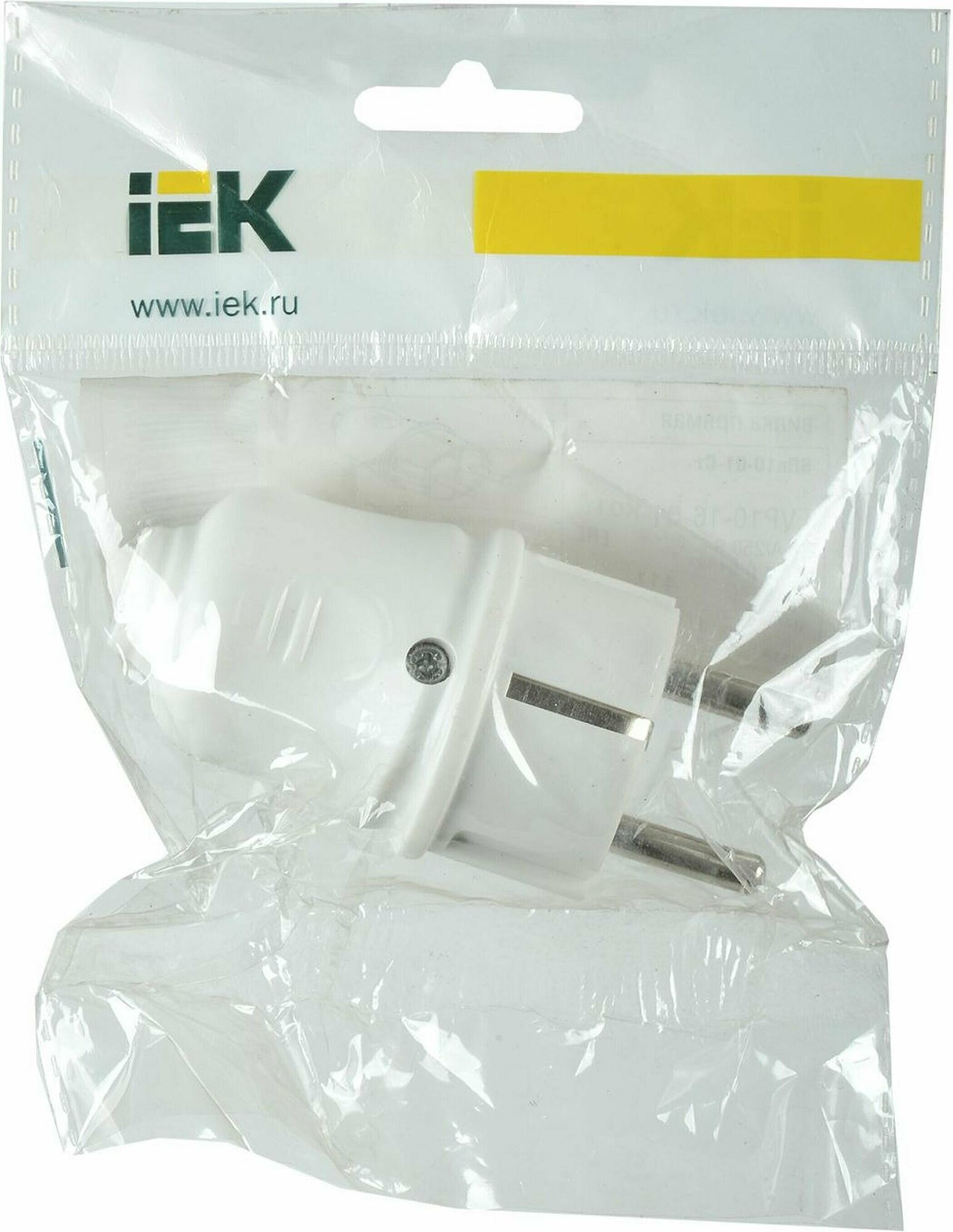 Вилка прямая IEK с заземлением белая 16а 4456289