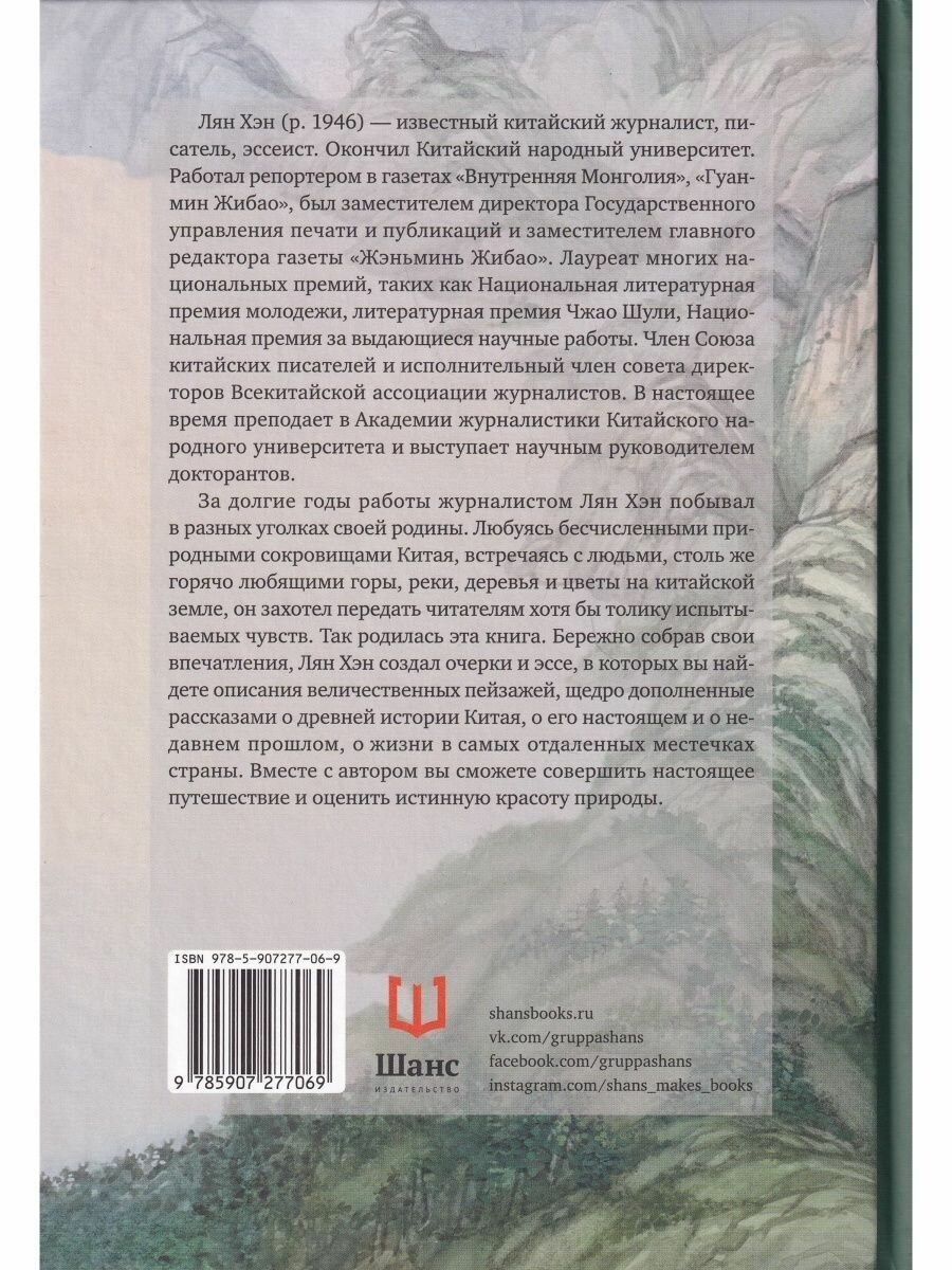 Природа Китая поистине удивительна и многообразна: бескрайние степи, величественные горы, густые леса, прекрасные реки и водопады... Лян Хэн в своих произведениях рисует замечательную картину китайских пейзажей. С любовью и трогательной нежностью он пишет о красоте родной земли, о людях, оберегающих ее природу. В этой книге вы найдете восемь тематических сборников с очерками и эссе, посвященными горам и рекам, полям и лесам, а также достопримечательностям различных регионов Китая и других стран, в которых довелось побывать автору.