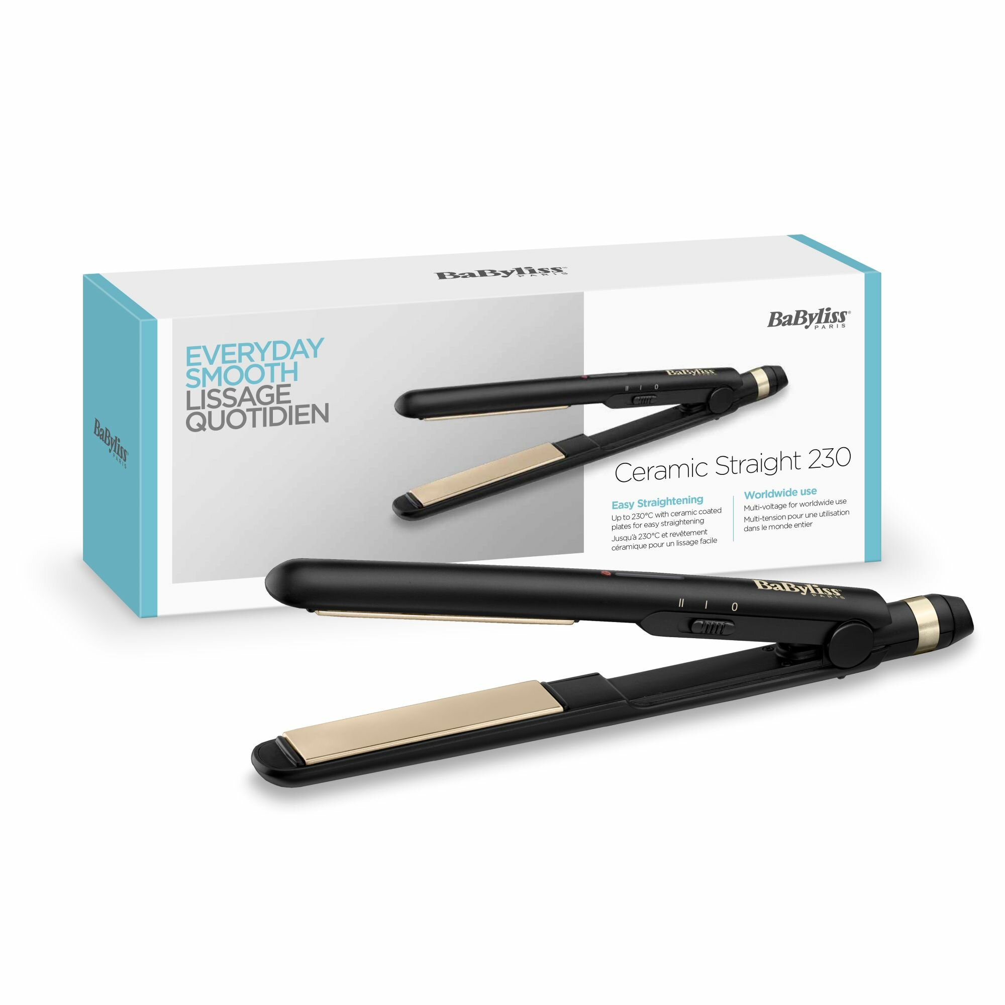 Выпрямитель BaByliss нагревается до 230 градусов всего за 30 секунд. Выберете один из двух температурных режимов 200 или 230 градусов в зависимости от типа ваших волос. Гладкое керамическое покрытие пластин обеспечивает равномерное распределение температуры и идеальное скольжение. Вращающийся шнур 2 м и термоустойчивый коврик сделают работу с прибором максимально удобной и безопасной.
