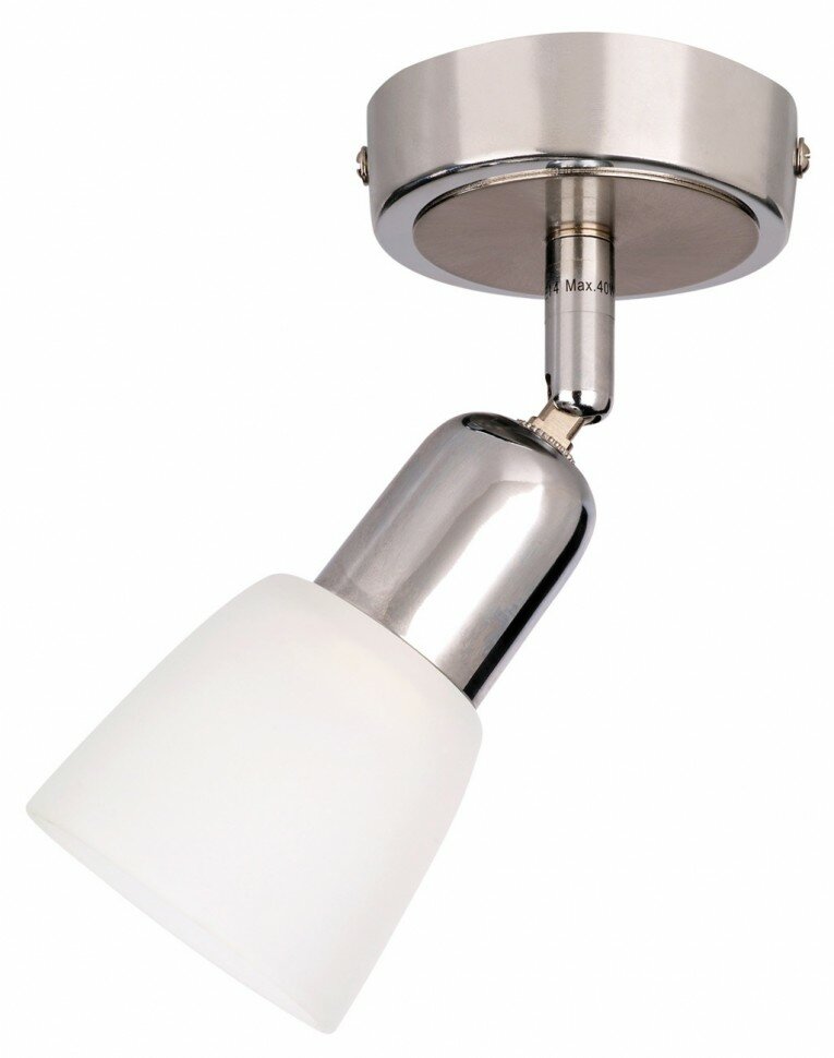 Спот Debora – товар от китайской компании Escada. Рассчитан на размещение в гостиной, прихожей и коридоре, кафе, кухне, офисе, предпочтительный стиль дизайна – хай-тек. Примерная площадь освещения 2 кв. м при максимальной мощности в 40 Вт. Основной материал изготовления – металл цвета хром. Абажур выполнен в белом цвете. Цоколь – E14, максимальная мощность лампочки – 40 Вт. Лучшая цена и быстрая доставка спота в интернет-магазине Люстрон!