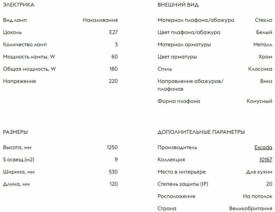 | Цвет плафона / абажура | белый матовый |