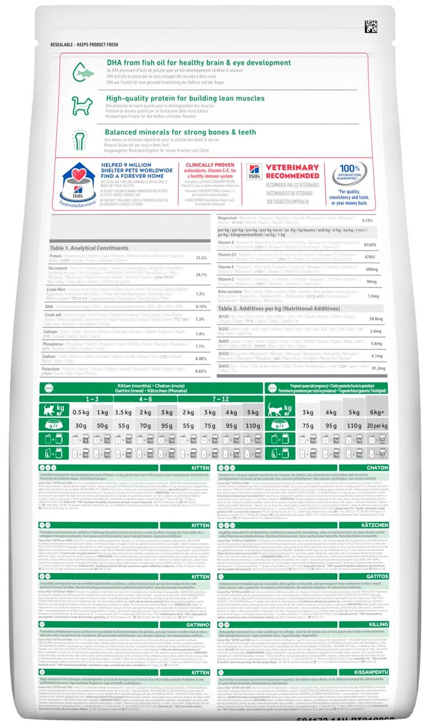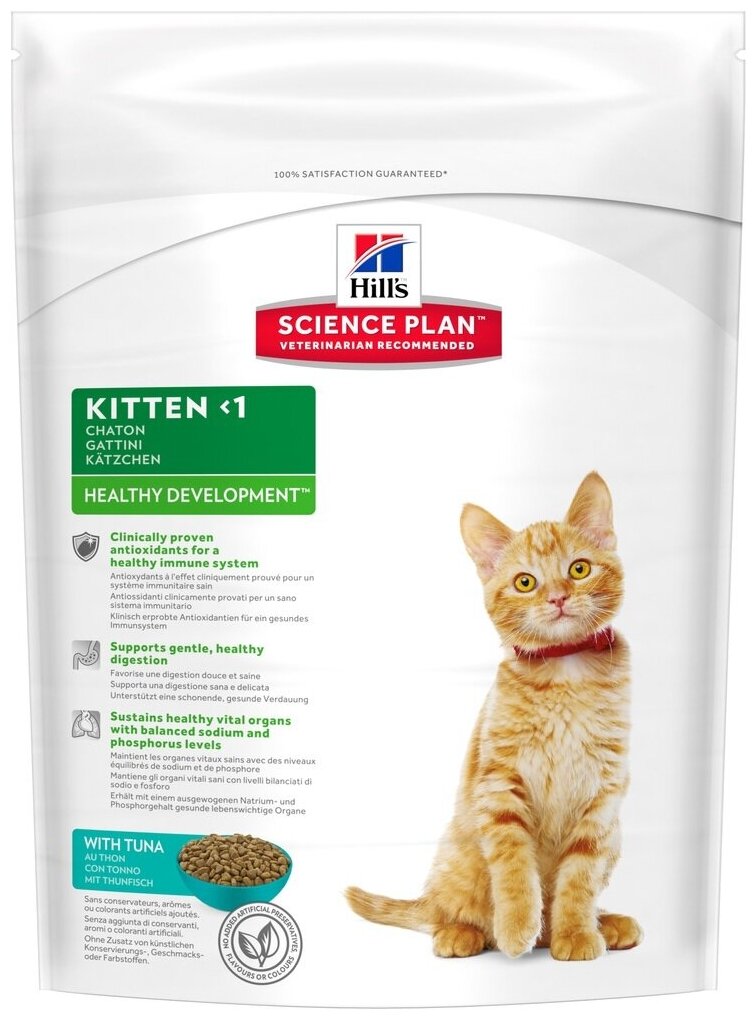 Hill's Science Plan Healthy Development сбалансированный рацион для котенка: - питательные вещества для роста и развития - высококачественные ингредиенты для здорового пищеварения - удовлетворения индивидуальных потребностей вашего котенка - антиоксиданты с клинически подтвержденным эффектом для здоровой иммунной системы - омега-3 жирные кислоты (ДГК) для оптимального развития головного мозга Переводите на рацион Science Plan™ Optimal Care по достижении возраста 12 месяцев. Стерилизованных кошек старше 6 месяцев следует перевести на рацион Science Plan™ Sterilised Cat Young Adult. Пробуете этот рацион впервые? Постепенно в течение 7 дней переводите животное на новый рацион, увеличивая его содержание по отношению к прежнему. Обеспечьте питомцу свободный доступ к свежей воде. ДЛЯ КОТЯТ И БЕРЕМЕННЫХ КОШЕК: Рекомендуется кормить 2-4 раза в день. Суточная норма, указанная на упаковке, должна быть рассчитана в соответствии с размерами котенка и поддерживать оптимальный вес.