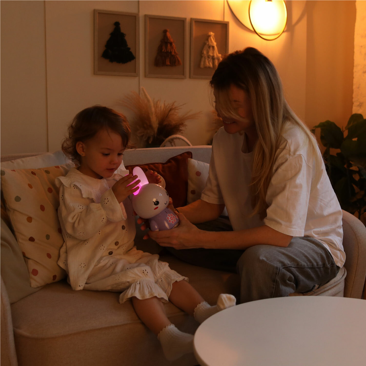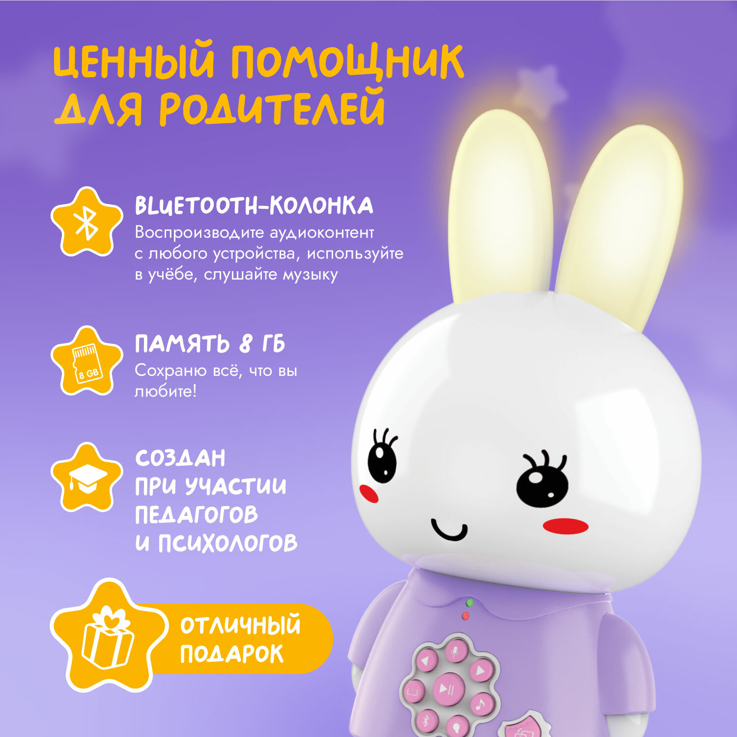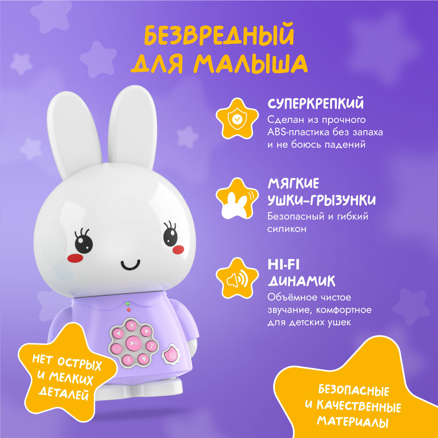 В зависимости от возраста можно обновлять контент - загружать новую музыку, сказки на русском и английском языках. Зайчик растёт вместе с ребёнком!