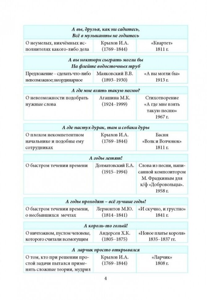 Мы попытались не только собрать крылатые фразы и слова, но и представить их наглядно. Перед собой мы поставили задачу помочь пользователю максимально убыстрить поиск авторской крылатой фразы или слова. Нами выверены года жизни авторов известных строк, уточнены их значения.