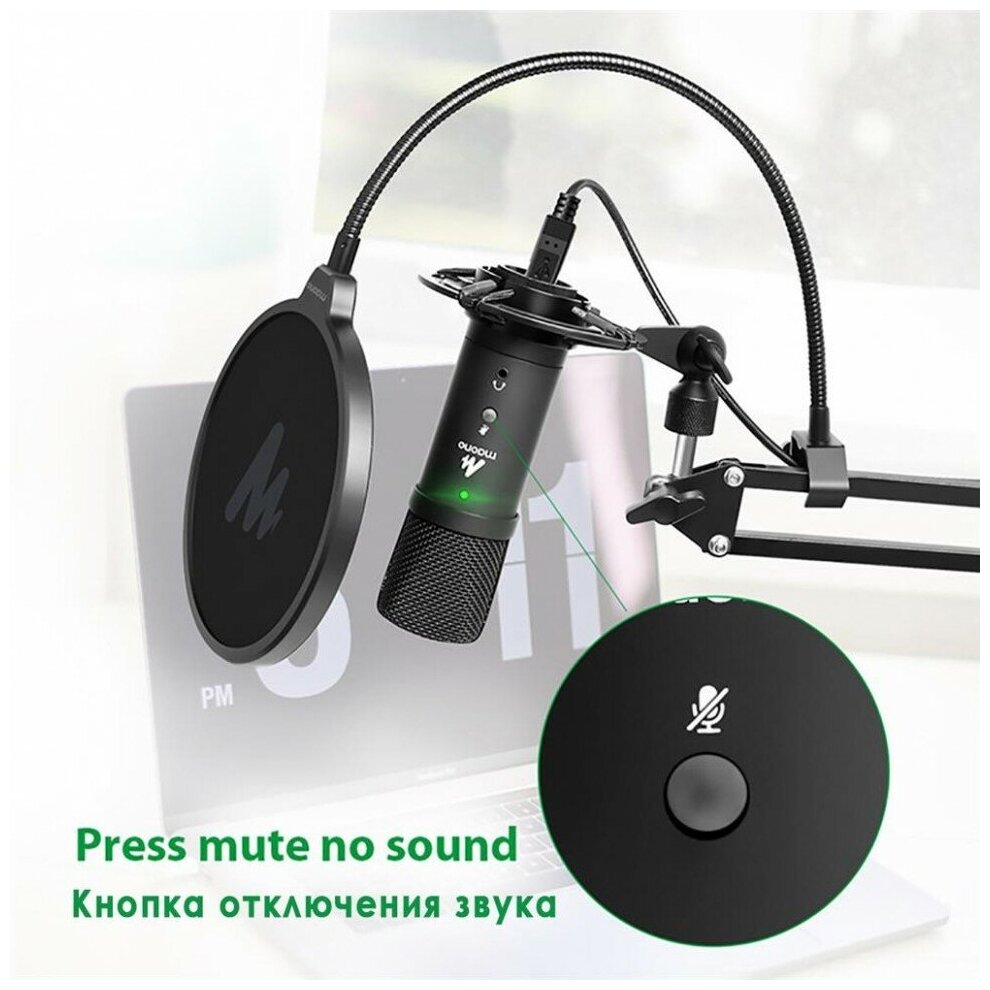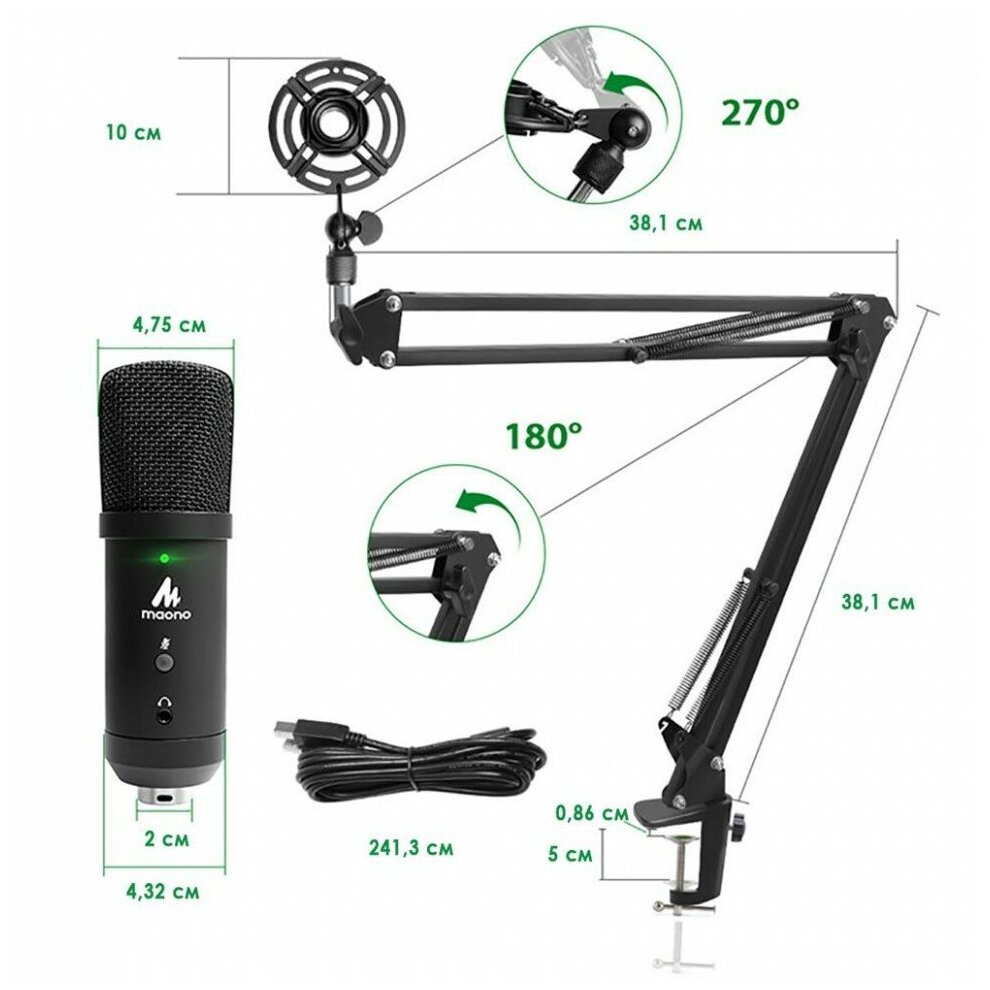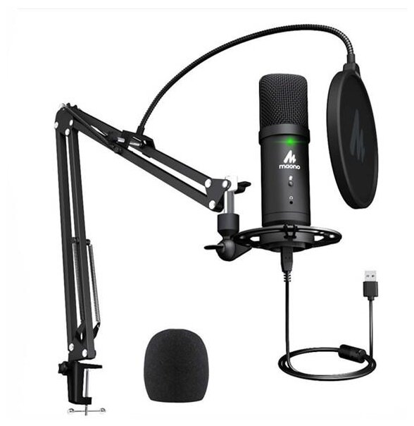 Maono представляет собой компактный и функциональный микрофон с USB-подключением, который обеспечит высокое качество записи звука. В комплекте с микрофоном поставляется шок-маунт и крепление, которое позволяет закрепить устройство на столе или другой плоской поверхности.