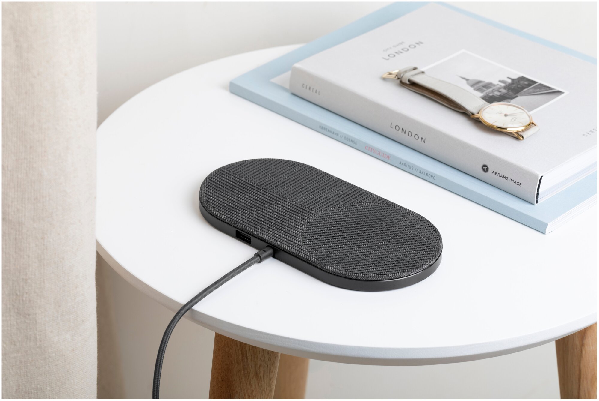 Беспроводное зарядное устройство Native Union с увеличенной площадкой использует интеллектуальную систему управления питанием и позволяет заряжать несколько устройств одновременно. Оно подбирает оптимальную силу тока в зависимости от типа устройства, текущей температуры его батареи и других параметров. Это позволяет ему быстро заряжать мобильные девайсы, сохраняя неизменный ресурс их аккумуляторов. Полная безопасность. Устройство автоматически отключается в случае перегрева, перегрузки, сильных колебаний напряжения и обнаружения посторонних металлических предметов. Это помогает избежать поломки индукционной катушки и возгорания. Только качественные материалы. Устройство изготовлено из авиационного алюминиевого сплава и оформлено текстильным покрытием с нескользящими силиконовыми вставками. Его длинный кабель защищен прочной нейлоновой оплеткой. Универсальное применение. Индукционная катушка совместима со всеми смартфонами, поддерживающими технологию QI – в том числе новейшими моделями iPhone, Huawei Honor и Samsung Galaxy. Она поддерживает зарядку сквозь чехлы с толщиной до 3 мм.