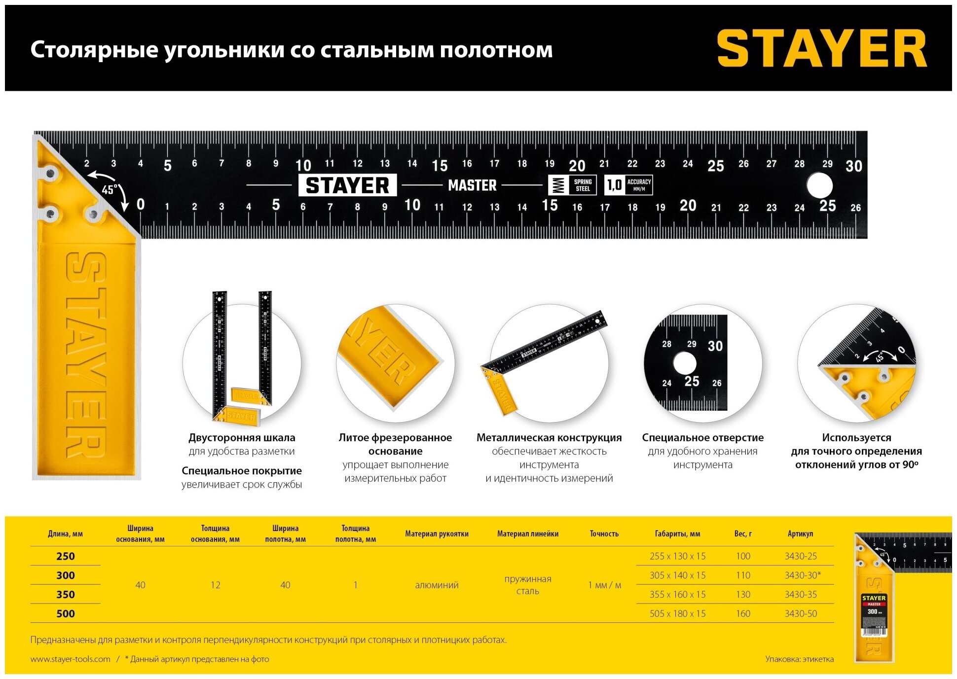 Угольник Stayer 3430-25_z01 25 см металл HEAVY DUTY