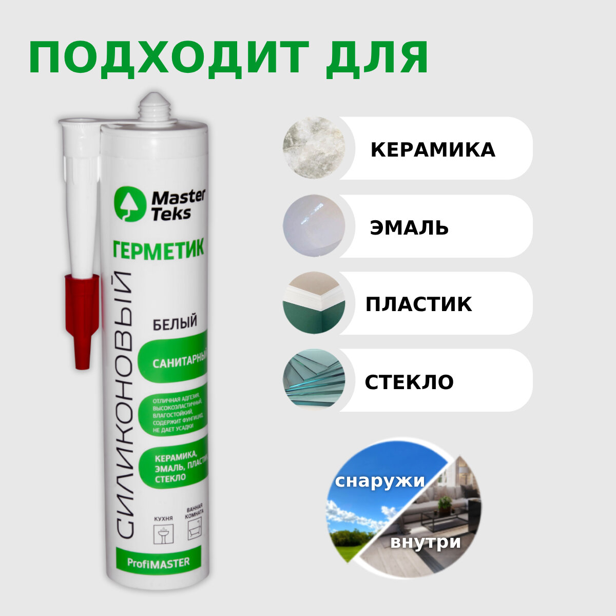 ГЕРМЕТИК "PROFMASTER" СИЛИКОН. САНИТАРНЫЙ БЕЛЫЙ 290 МЛ (12) "MASTERTEKS" (9612905)