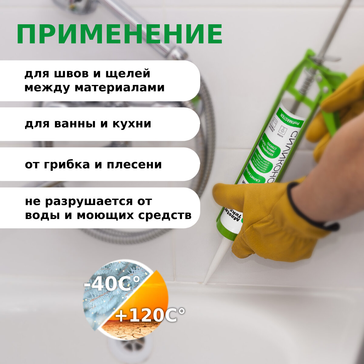 Высококачественный однокомпонентный силиконовый герметик кислотного типа с противоплесневыми и противогрибковыми добавками, затвердевающий под воздействием влажности воздуха.