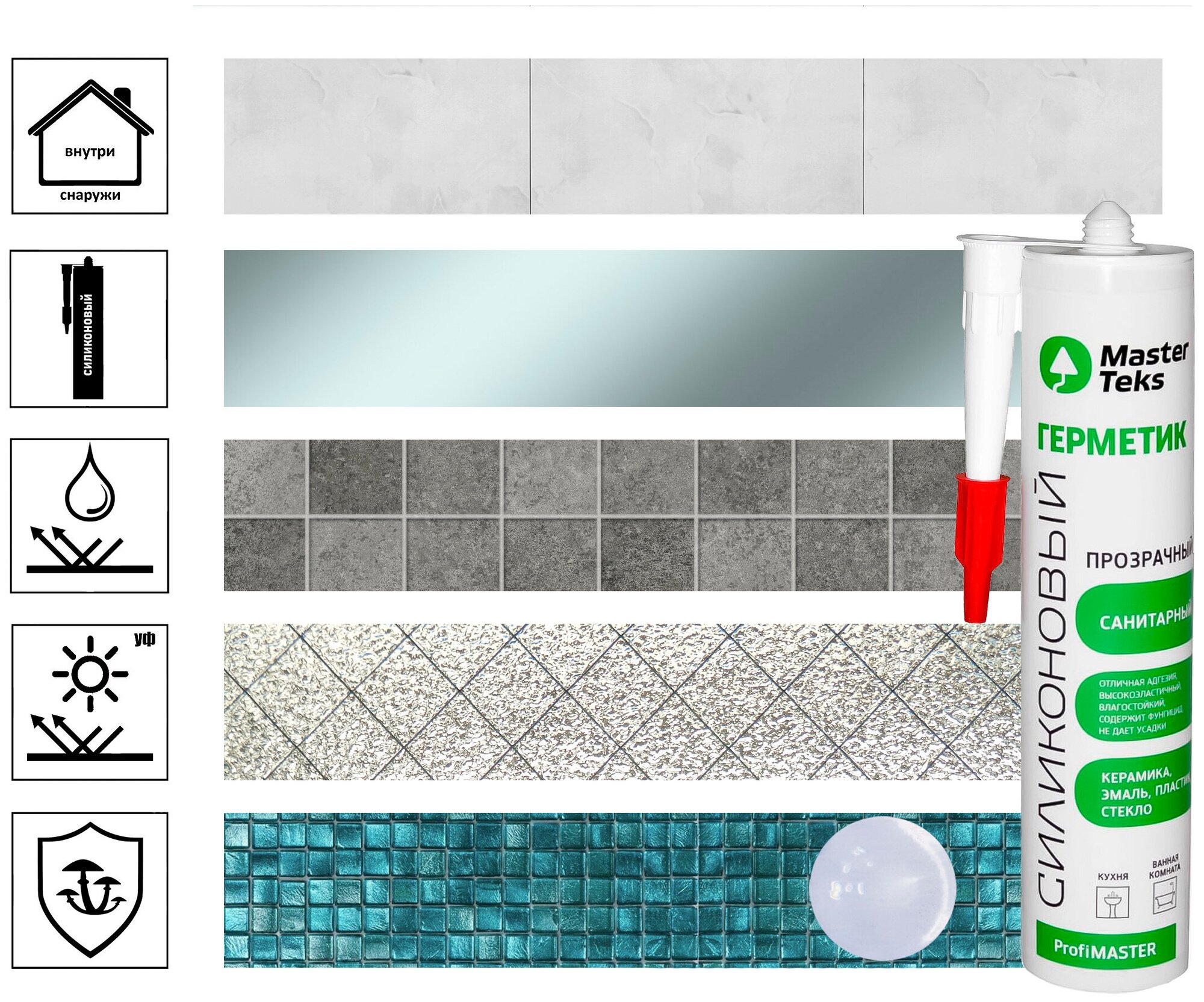 Высококачественный однокомпонентный силиконовый герметик кислотного типа с противоплесневыми и противогрибковыми добавками, затвердевающий под воздействием влажности воздуха.